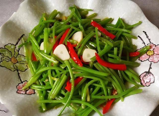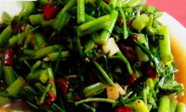 材料:空心菜、姜汁、红椒、盐、陈醋、芝麻油、油