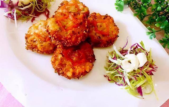 材料:大虾200g 猪肉30g 山药30g 火腿少许,花椒少许 油适量 芝麻30g 大葱适量 姜适量