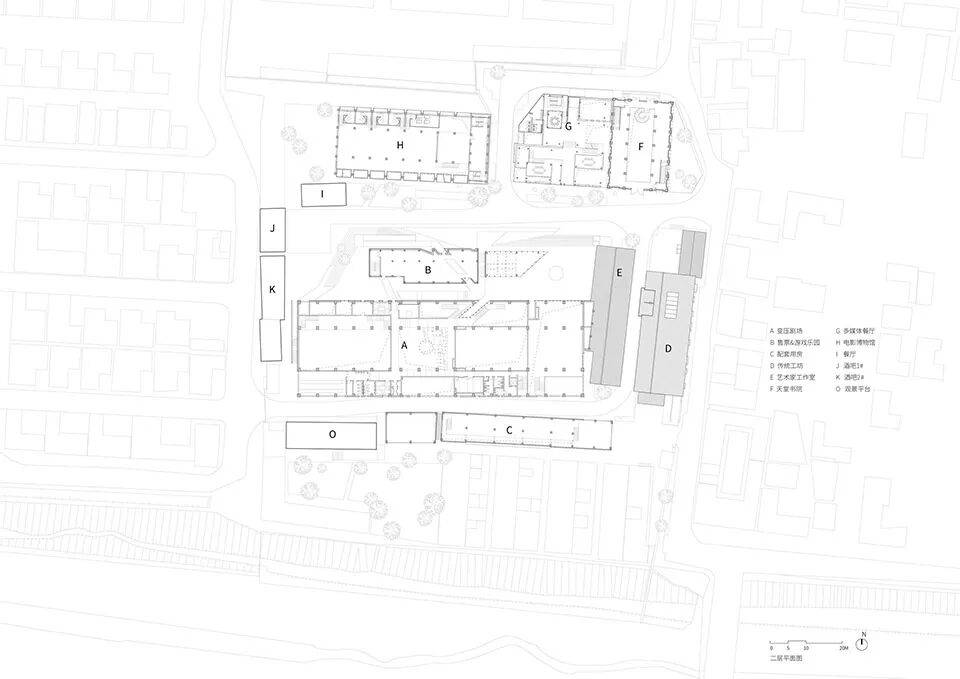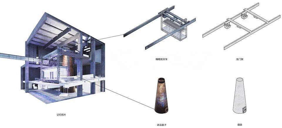 设计强调“现实与幻象之间的灰空间”。通过切割、拼接、重组等手法,将历史碎片(如70年代门卫小院、厂房结构)与现代戏剧空间融合。这种“模糊性与精确性”的结合,创造了未被定义的“异托邦”空间。例如,养鸡舍与门卫楼之间的过渡空间,既可能是晒衣场、炼铁场,也可能是戏剧表演的发生地,赋予平凡场景以戏剧化张力。
