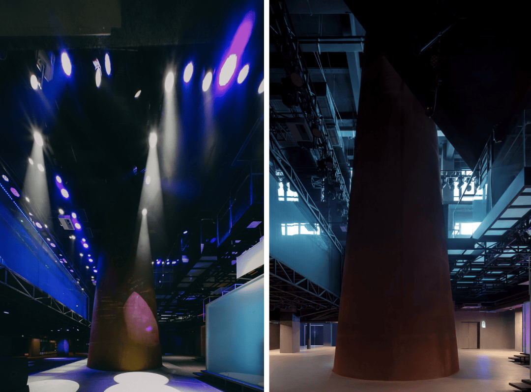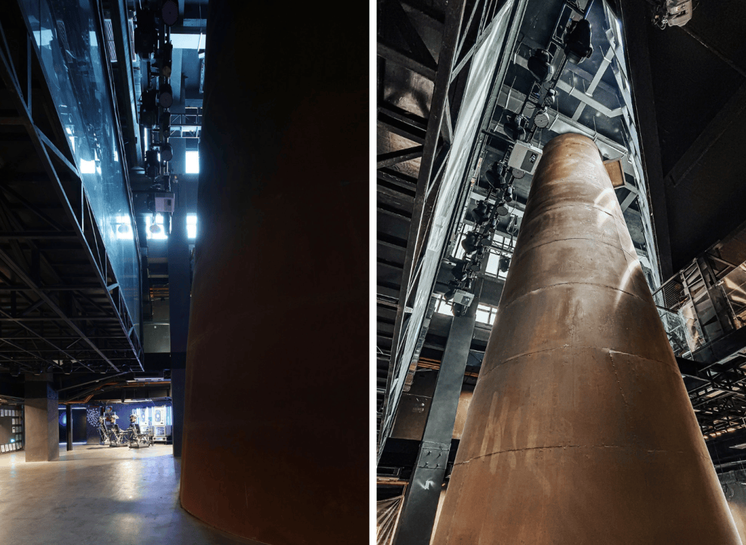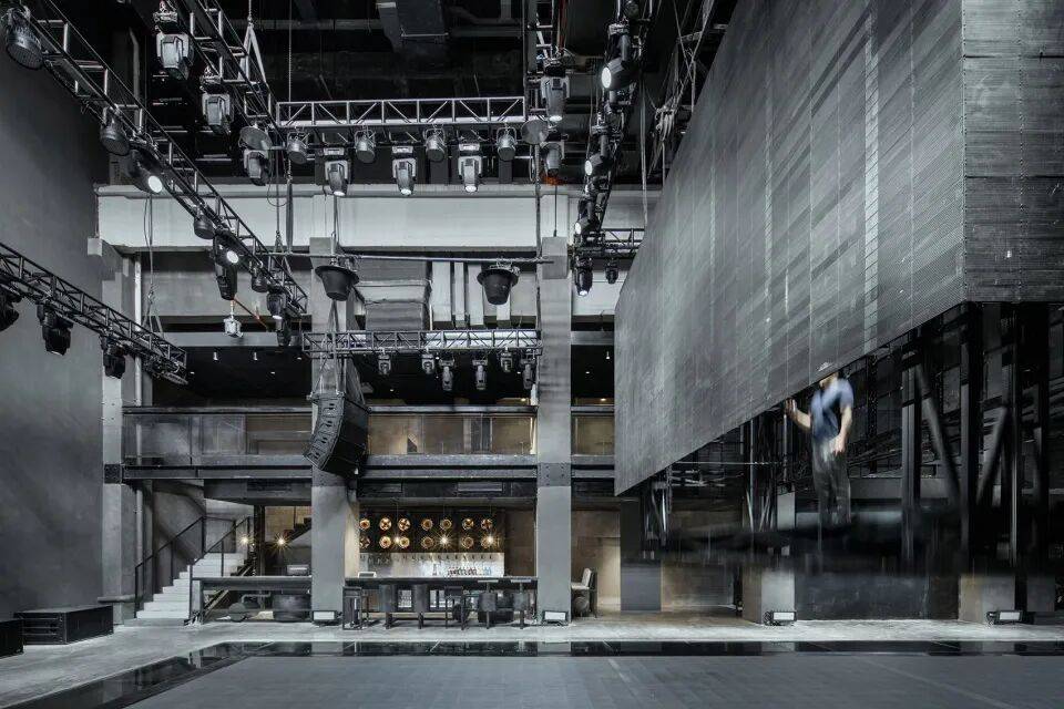 项目基地曾为工业厂区,保留了浸油罐、装配车间器具、地下铁井等工业遗迹。设计团队以Robert Slutzky“艺术史即社会发展史”的论述为指导,将剧场视为“电子时代与AI时代之间的变压”,探讨自然与人、人与机器之间的博弈。这些工业遗存——金属与水泥碰撞的美感,被赋予“黑暗之美”或“美的反面”的诗意,如同波德莱尔诗歌中对传统美学的颠覆与重构。