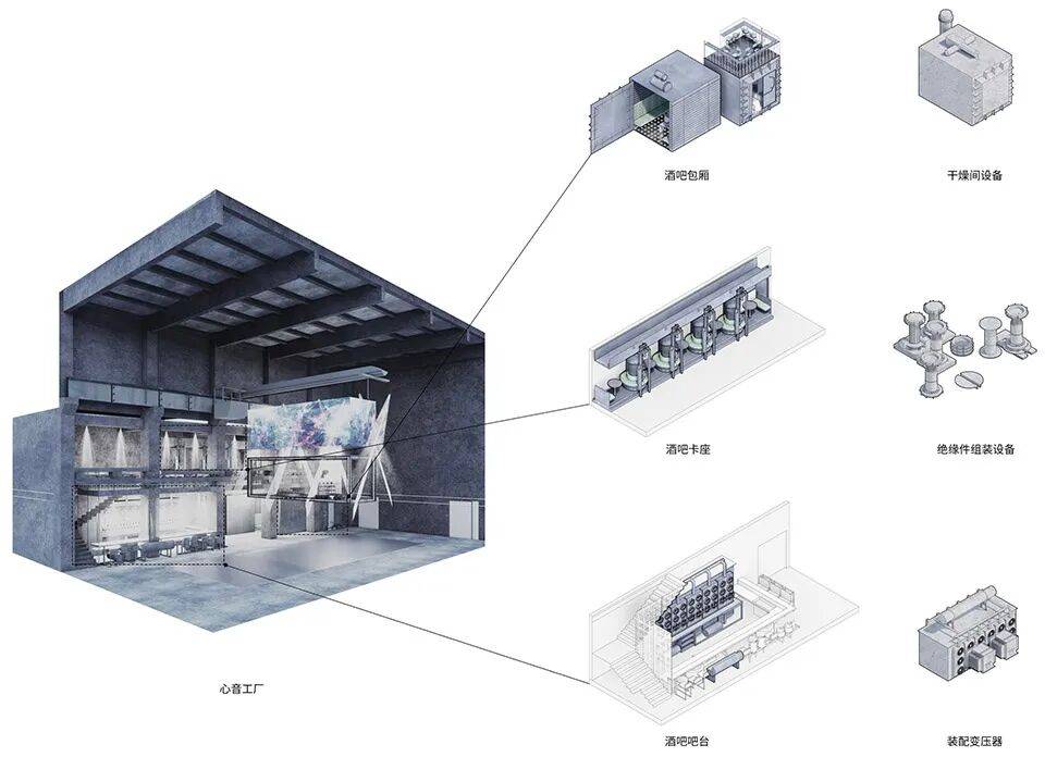 大理变压沉浸式剧场包含多个特色空间,每个空间都承载着独特的戏剧叙事与建筑表达: