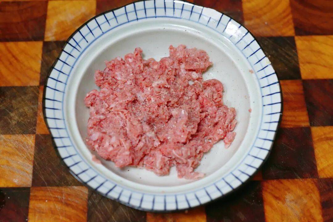 肉末腌制:肉末中加入少许生抽、料酒、黑胡椒(可选),搅拌均匀腌制10分钟(更入味)。
