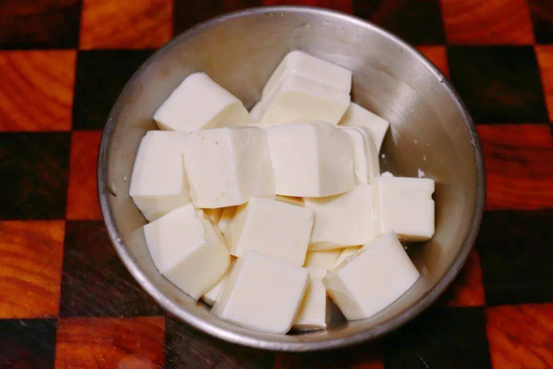 豆腐处理:将豆腐切成1.5厘米见方的小块,放入加了1勺盐的沸水中焯水2-3分钟,捞出沥干(去除豆腥味,让豆腐更紧实,炒时不易碎)。