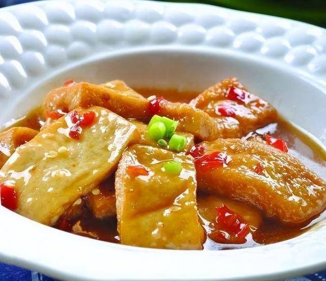 2、净白萝卜块150克焯水;锅内放入熟猪油50克,炒香萝卜块,放入东古酱油5克、自制牛肉酱50克炒香,注入骨头汤500克,大火烧开,小火炖至萝卜入味。
