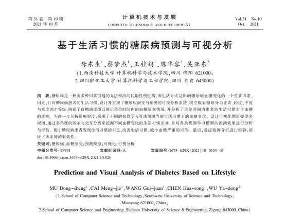 [1]母东生.基于生活习惯的糖尿病预测与可视分析[J].计算机技术与发展,2021