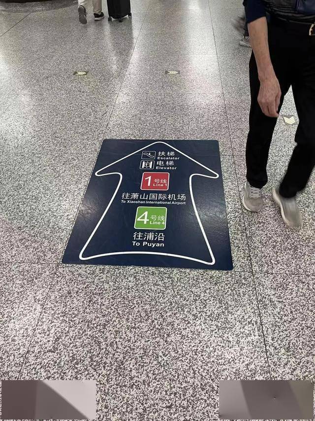 相比之下,杭州地铁,他形容有的道路标识像“像贴了一张牛皮癣”——太小、箭头太短、字太多,底色灰白,反光一照,更看不清。他要看清楚,只能蹲下去凑着看。