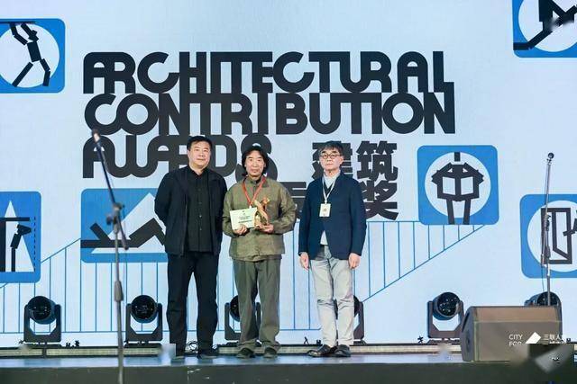 在2025年三联人文城市奖中,获奖项目方代表张鹏举与颁奖嘉宾张永和、周榕合影。张鹏举是内蒙古工大建筑设计有限责任公司首席总建筑师、内蒙古工业大学教授 / 图源三联人文城市