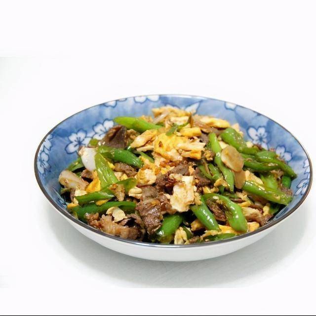 4.倒入辣椒,大火爆炒至辣椒微软,加适量生抽,倒入肉片,继续翻炒,加酱油。加入鸡蛋,中火炒一会,加盐调味即可。