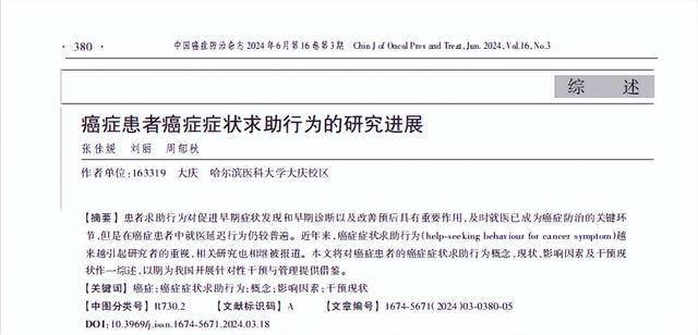 张佳媛 刘丽 周郁秋.癌症患者癌症症状求助行为的研究进展,中国癌症防治杂志,2024-6