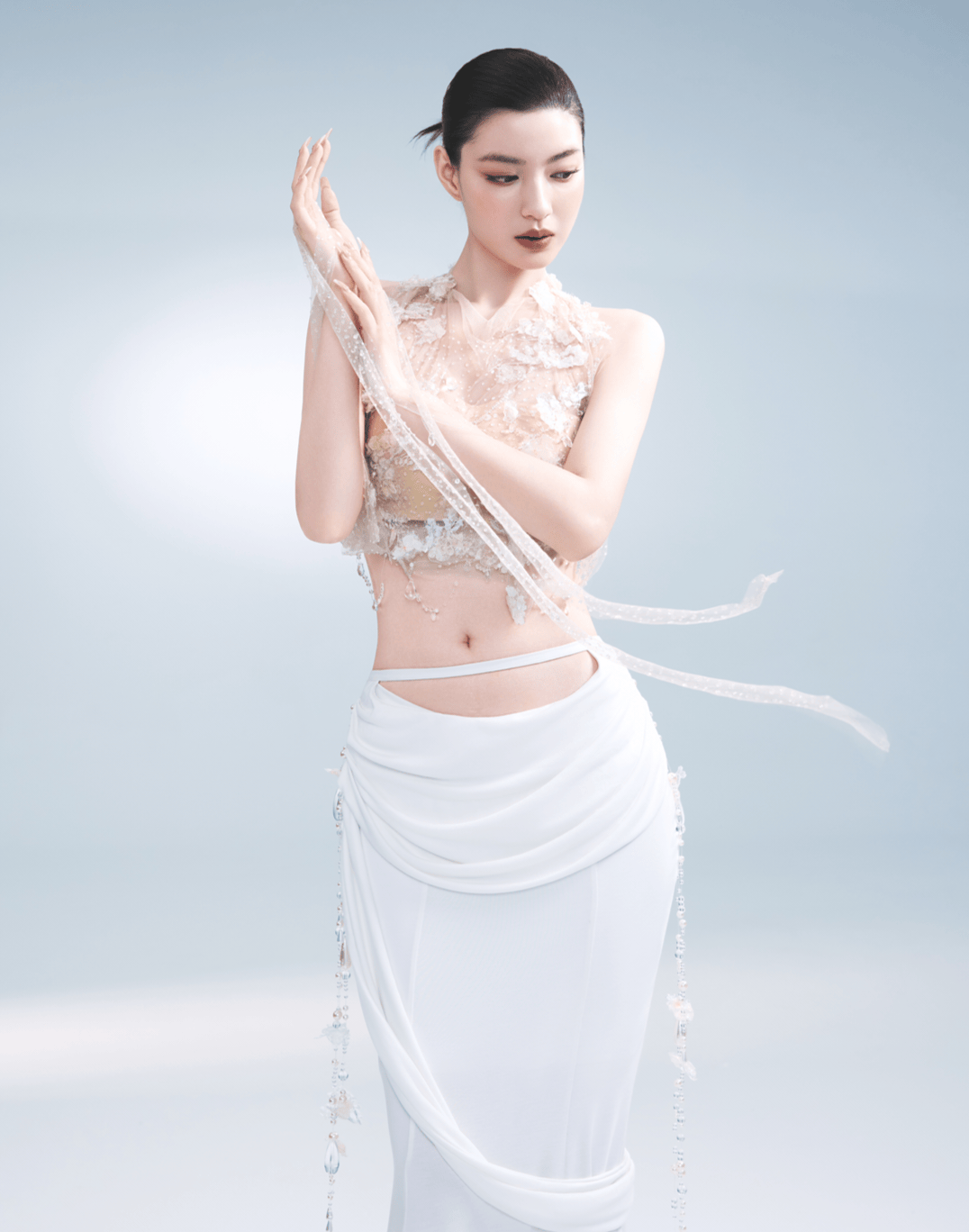 2019年前后沈月曾因“腿粗、比例一般”被质疑,但如今她通过穿搭技巧实现了逆袭。“实际体重仅95斤左右”,通过白色抹胸短裙、银色礼服等单品,“凸显曲线”,展现出“珠圆玉润的好身材”和“成熟优雅的复古美学”[12]。她的银色礼服造型中,“娇艳的俏脸,珠圆玉润的好身材,迷倒了无数粉丝”,证明了自信穿搭的魅力。