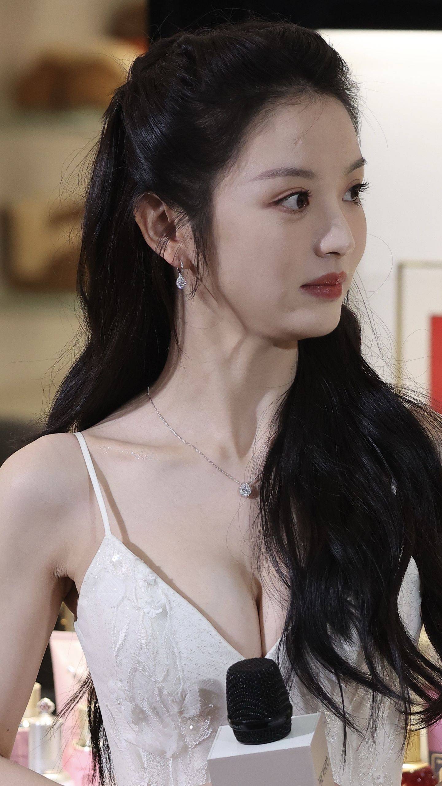 先说说这白色吊带礼服长裙,设计简直绝绝子。吊带的设计,把田曦薇那精致的肩颈线条完美地秀了出来。她的肩膀线条流畅又平直,没有一丝多余的肉肉,就像被精心打磨过的艺术品。那纤细的锁骨,清晰得仿佛能养鱼,在白色礼服的衬托下,更显优雅迷人。而且吊带还巧妙地露出了她白皙细腻的肌肤,这皮肤状态,简直就像剥了壳的荔枝,光滑又水嫩,让人忍不住想伸手摸一摸。