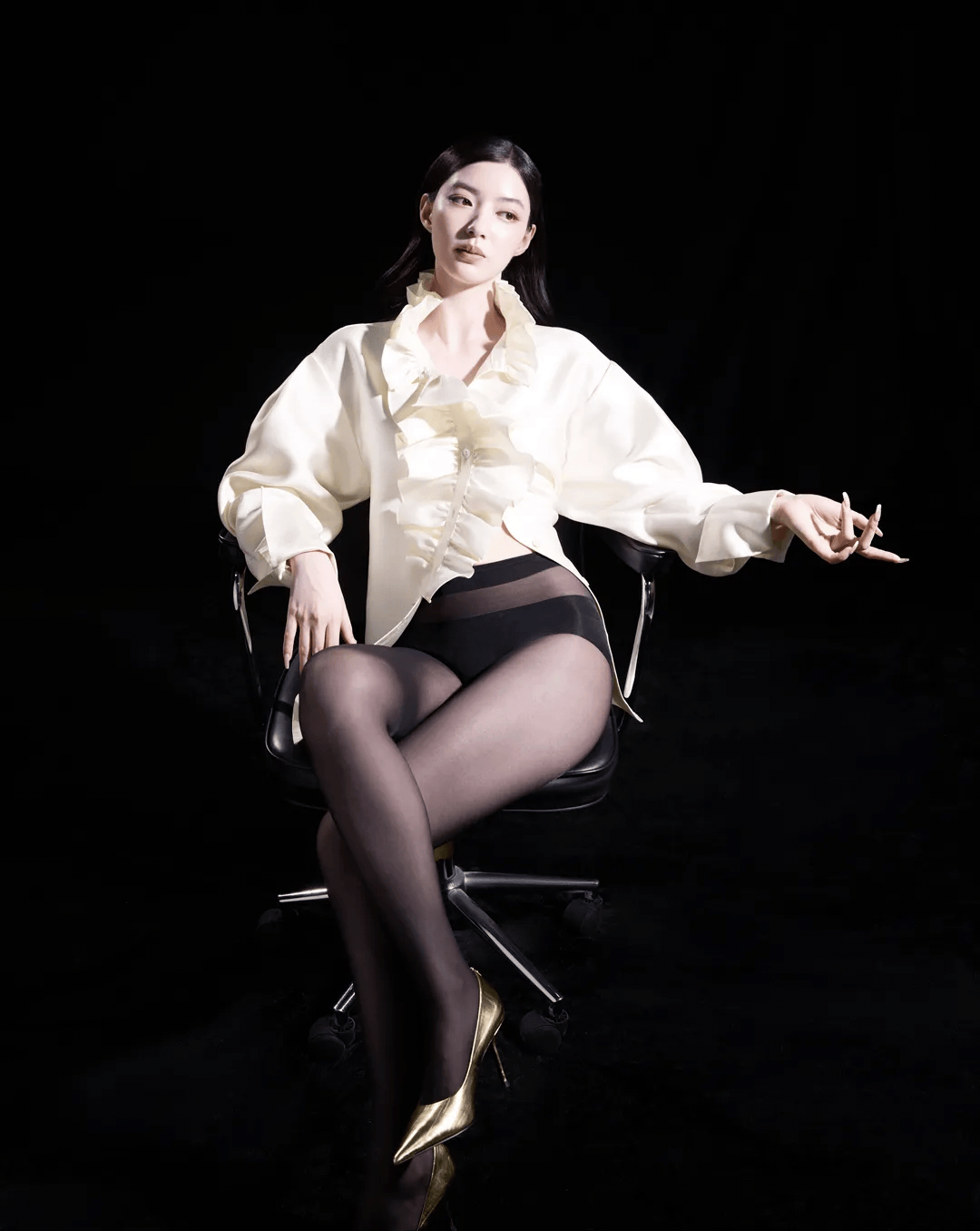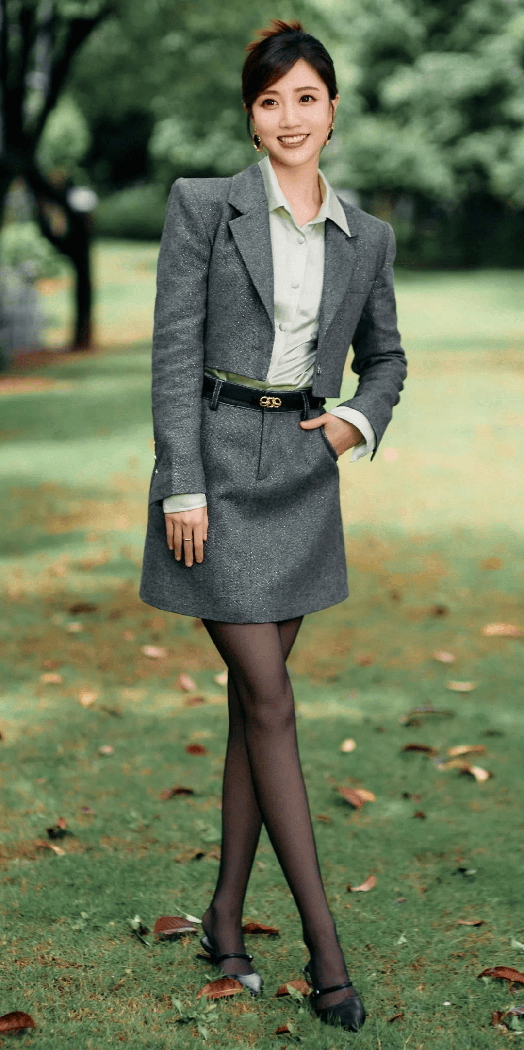 当她搭配上黑丝,瞬间又多了几分性感迷人的韵味。黑丝紧紧贴合着修长的双腿,若隐若现间散发着致命的吸引力,就像神秘的魔法,让人忍不住目光追随。她微微侧身,一只手随意地搭在椅背上,姿态优雅又自信,仿佛在宣告着职场女性的独特魅力。