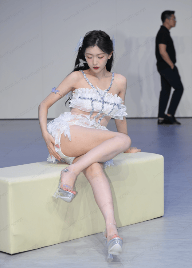 喧闹的车展大厅里,金属与灯光交织出工业质感,直到小美穿着白裙走过,空气都似染上了轻柔。雪纺材质的长裙随风轻扬,裙摆绣着细碎的银线,在车灯映照下泛着微光,像误入机械森林的精灵,瞬间抓住了全场目光。