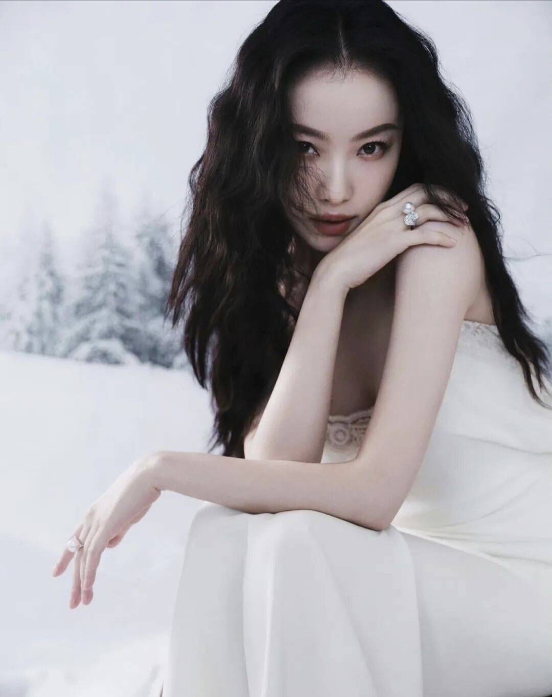 - 倪妮以白色蕾丝吊带长裙诠释了“温柔纯净感”,将优雅、浪漫与高级感融为一体,宛如冬日精灵;