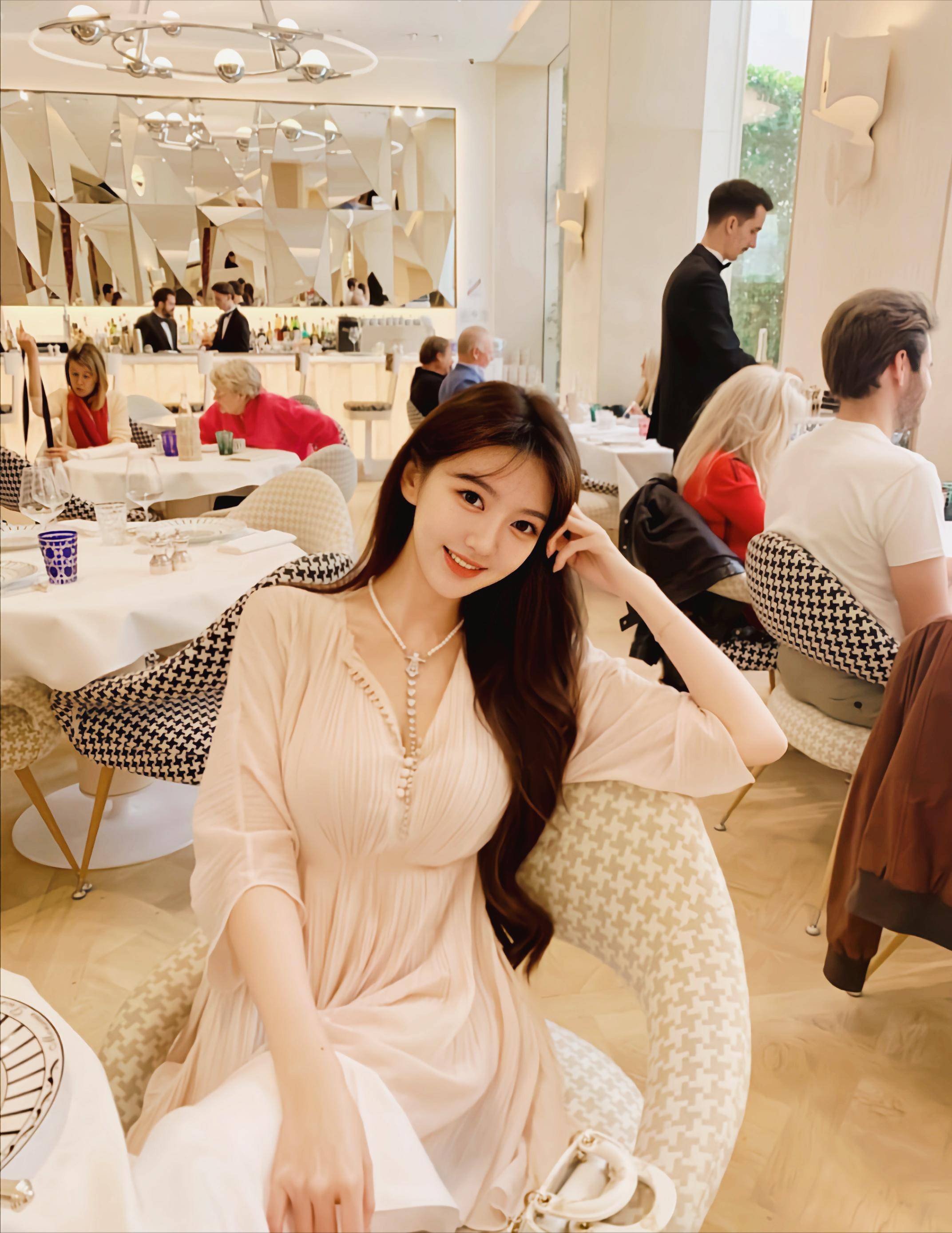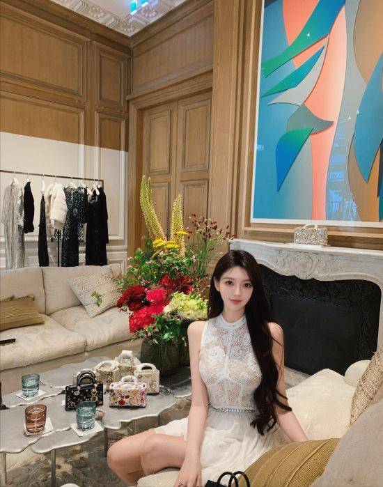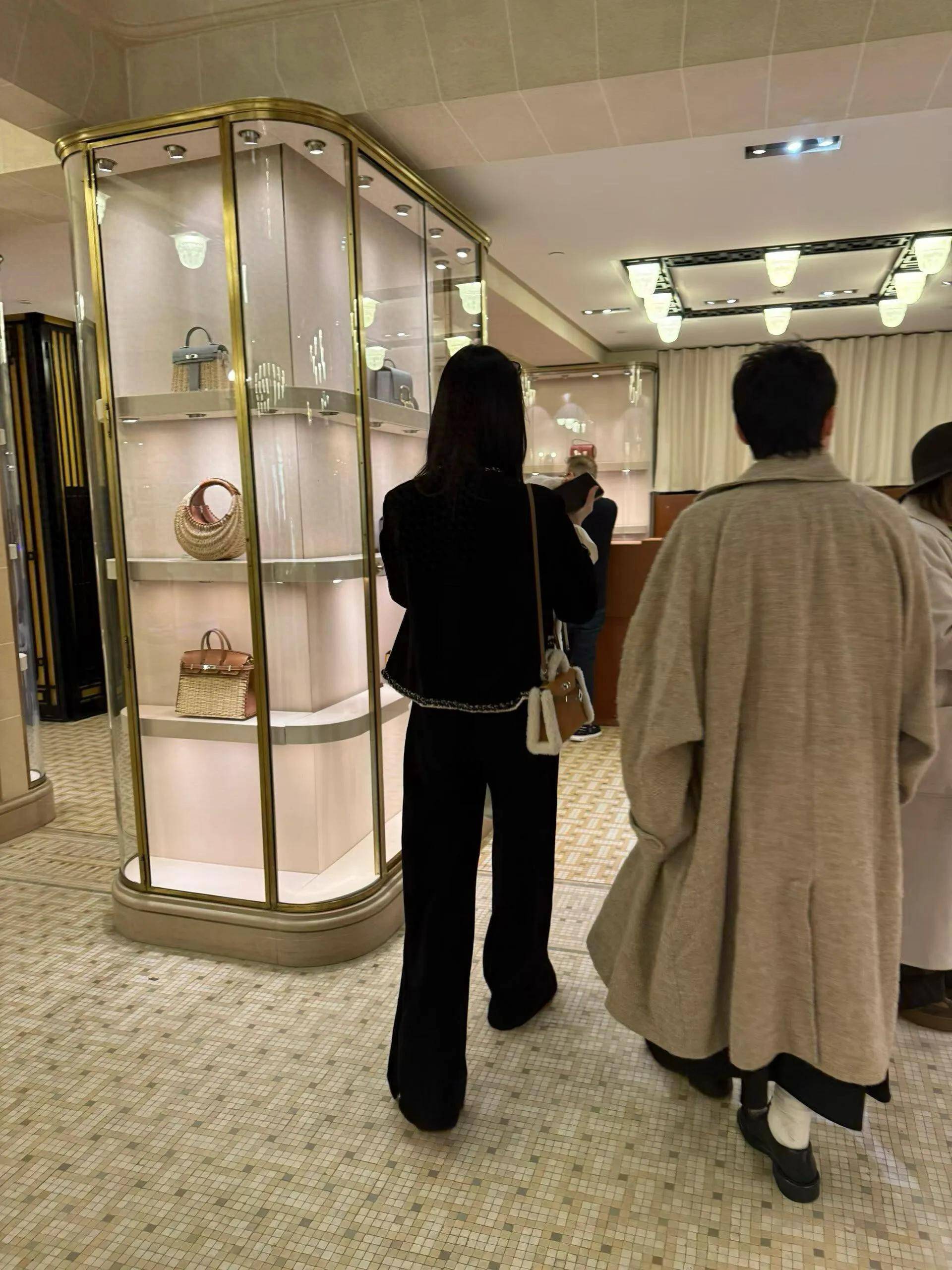 奚梦瑶在巴黎爱马仕总店购物的照片,奚梦瑶一身香奈尔装扮,尽显名媛风范。网友纷纷称赞她“又瘦又高又美”。