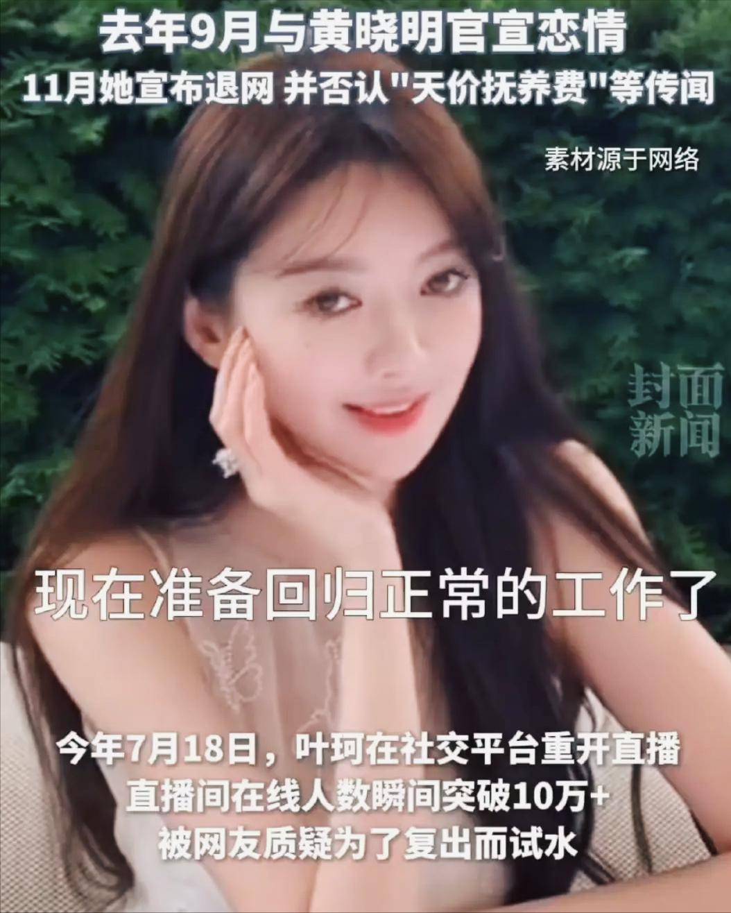12月1号晚上,沉寂许久的叶珂突然上线。镜头里的她脸色疲倦,妆容简单得几乎跟素颜没差。