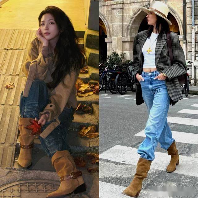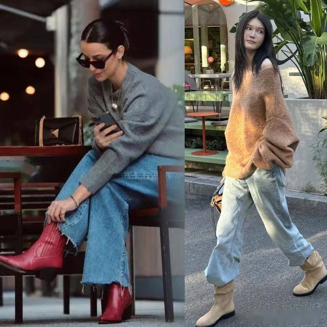 冬天到了穿靴子的季节,搭配牛仔裤再适合不过了。