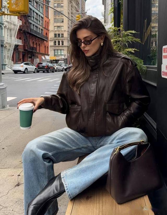 如果要通勤,很推荐深色系的直筒牛仔裤搭配皮质的切尔西靴,搭配毛衣或是大衣,温柔与力量并存,是大女主的风格标配。