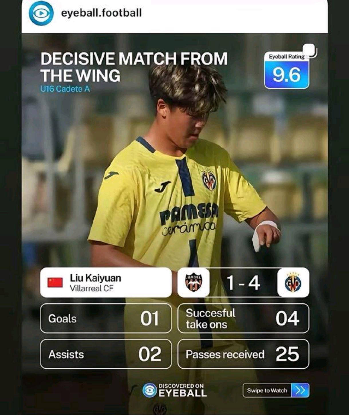 个人前景广阔:在U19荣誉联赛的锤炼下,刘凯源的技术、身体对抗和比赛理解能力将进一步提升。若能持续进步,他有望在未来几年内进入比利亚雷亚尔B队,并向一线队发起冲击。