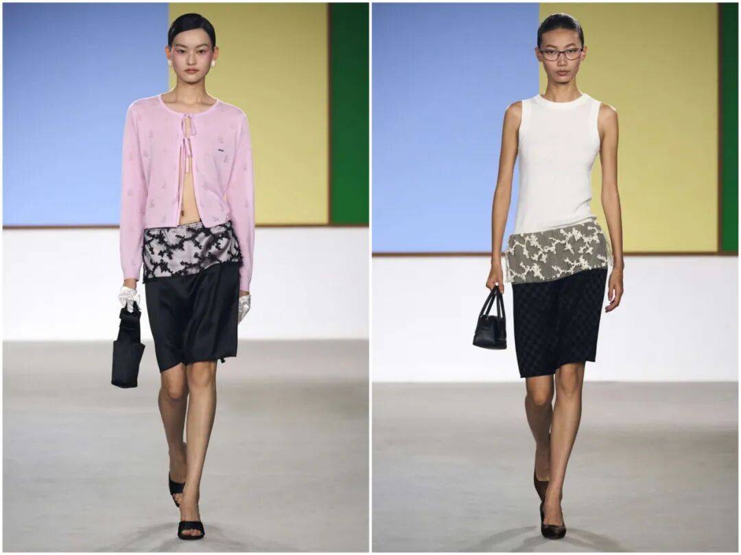 在裙摆的位置,黑色的颜色以纯色的颜色多了稳重沉稳的优雅气质,在腰间的位置,以色彩的对比冲击增加了撞色花纹的活力感,将一些视线集中在了腰间之上,而搭配的上衣,则在粉色的针织衫、白色的无袖背心等元素之上,让这些花纹部分更多了一些细节的亮点。