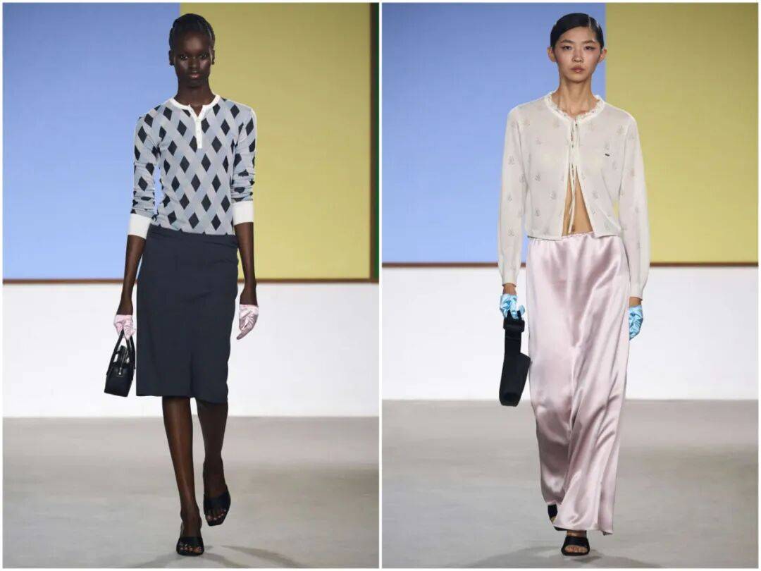 主色调:内敛金属光泽缎面贯穿全场,粉、黄、蓝、紫等柔和色调与经典黑白灰冷色调交相呼应