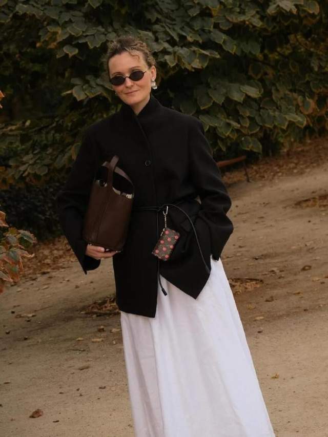 避免沉闷:选 V 领款露锁骨增加露肤度,或用白色内搭 / 配饰(白 T 恤、白围巾、小白鞋)提亮,凸显复古感的同时更灵动;