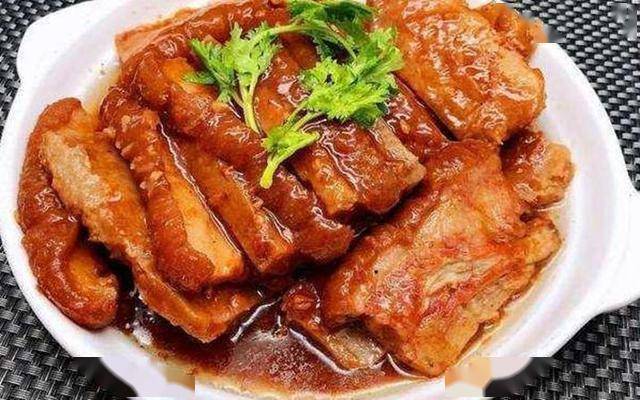 做法:五花肉煮熟切片,芋头切片炸硬壳,肉和芋头交替排列,加蚝油等调料蒸熟后倒扣装盘。