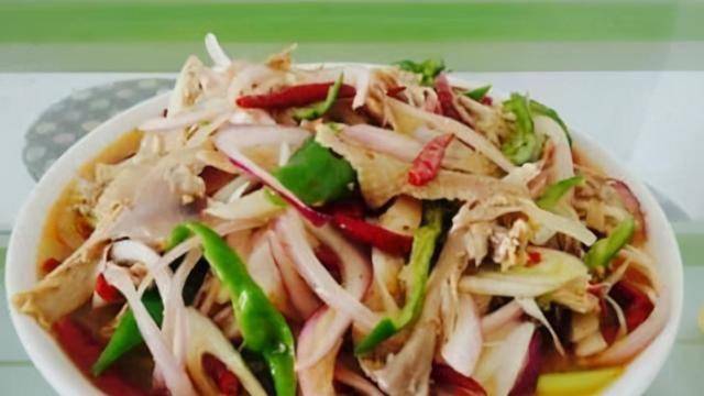 做法:鸡煮熟撕丝,洋葱切丝加盐拌匀,鸡丝加调料(小米椒、鲜花椒、辣鲜露等)拌匀。