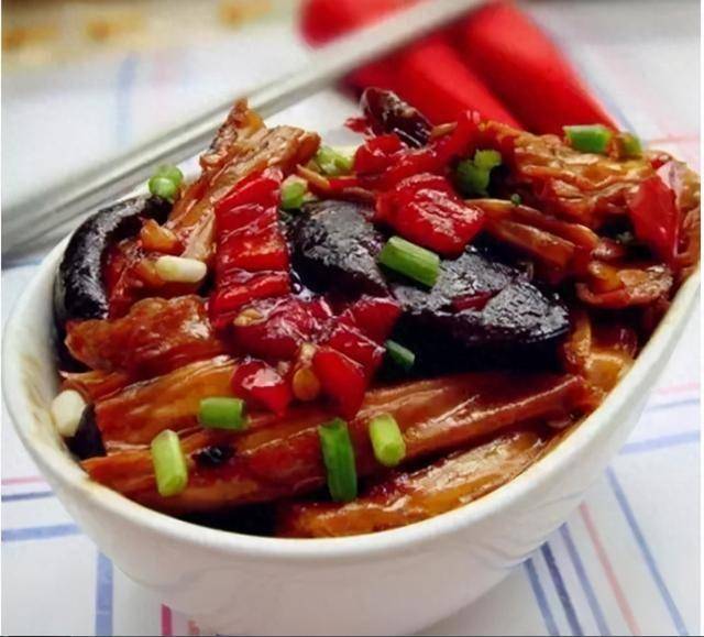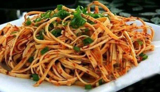 做法:豆腐丝泡软后炒香,加蒜末和干辣椒,撒熟芝麻拌匀。