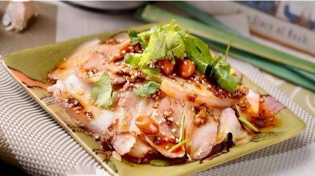 做法:五花肉煮熟切片,蒜泥酱(番茄酱、老干妈、料酒、盐、醋)淋在肉上。