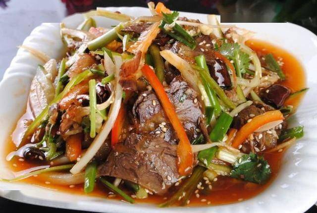 做法:牛肉炖熟切片,炒香调料后加生抽和鸡精,淋在牛肉上拌匀。