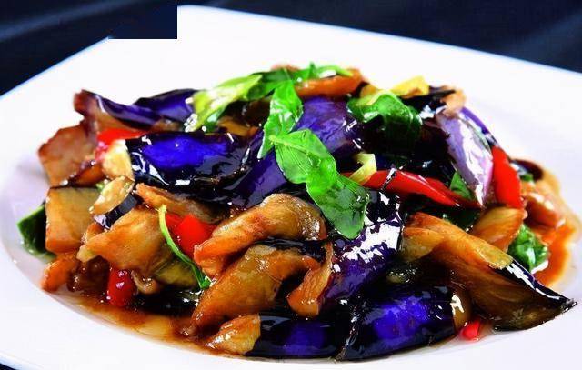 3、加入煎制过的茄子翻炒均匀,加点香油跟蒜末翻两下盛出即可,最好放在青菜叶子上食用。
