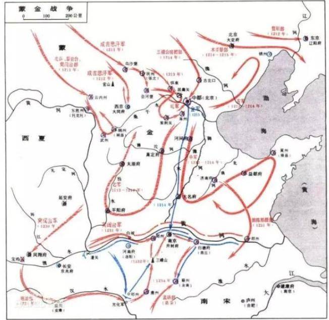 自从1211年开始,在成吉思汗的蒙古铁骑之下,金国数次战败,更是被消耗了大量的主力军,最后只有尽力退让。这时候的蒙古在几方势力中,已经有了极大的威名,甚至成吉思汗的心思也不止于此。