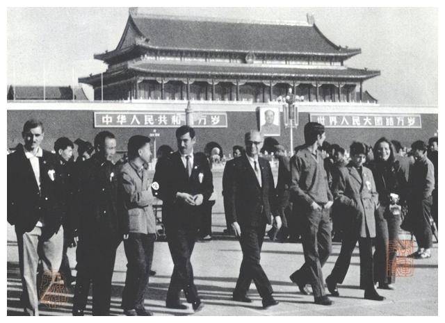 随着大串联的结束,照相点逐渐从天安门前转移到了路南的旗杆两侧,以及大会堂和历史博物馆前的固定地点。此后,北京市决定将天安门广场三分之一的照相任务交由东城区的北方照相馆承担,打破了大北照相馆独家经营的局面,其他单位也陆续参与了经营。 文革时期,天安门广场的照相生意非常火爆,大北照相馆在忙碌中,处理着大量的洗印和装裱工作,差错率较高,很多顾客对此表示不满。1970年,大北照相馆的师傅们发扬革命精神,勇于创新,成功研制出了一种立等可取的静电照相机。几位文化程度不高的师傅,用不到一年的时间,就完成了这一技术的研发,并投入使用。值得一提的是,这项技术,在当时是非常先进的,集光、电、化学染料和机械原理于一体,至今看起来仍然充满创造性。 1971年2月14日,首都50万军民举行了气势恢宏的示威游行,坚定表示全力支持印度支 那三国人民的抗美斗争。示威队伍高举标语,行进经过天安门广场,气氛热烈。 1971年5月1日,50万首都人民在劳动人民文化宫、颐和园、首都体育馆、北京工人体育馆等多个场所举行了丰富多彩的庆祝活动。晚上8点,毛主席最后一次登上了天安门城楼,这也成为他最后一次出现在天安门城楼上的场景。 1971年11月15日,叙利亚乒乓球代表团漫步天安门广场。由朝鲜、埃及、日本、毛里求斯、尼泊尔及中国乒乓球协会共同举办的亚非乒乓球友好邀请赛,于11月2日至14日在北京举行。 1972年2月21日,尼克松访华时,北京突然下起了二月雪。北京市紧急动员了大量市民上街扫雪。当尼克松的车队经过天安门时,街道上没有了往日热烈的欢迎场面,车队通过天安门后,才有市民重新出现在广场上。