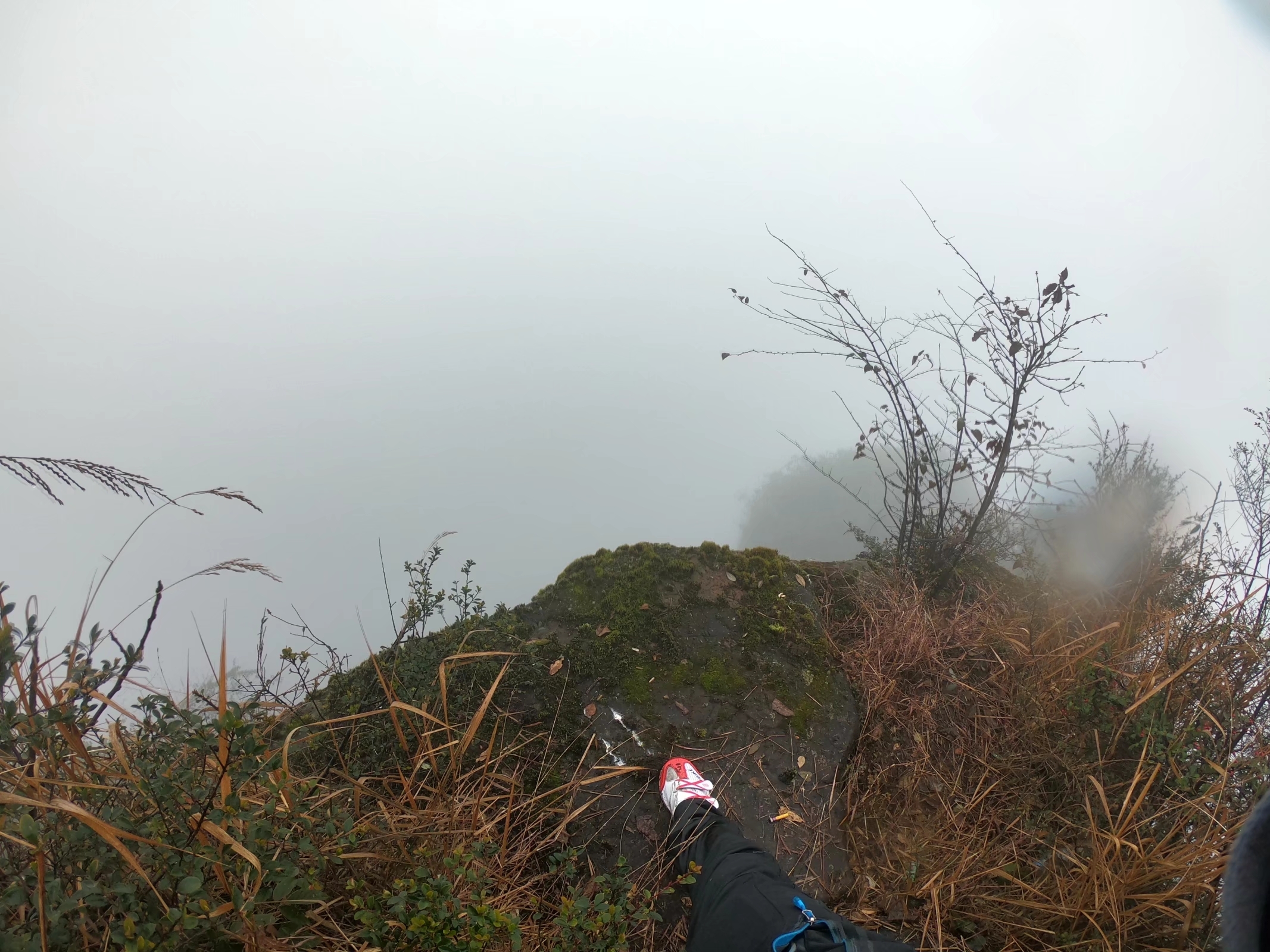 沿着林间小道来到古寨尽头的舍身崖,大雾就像云海太美了,一个人不敢太靠外边,如果没有雾的话,视野应该非常开阔。