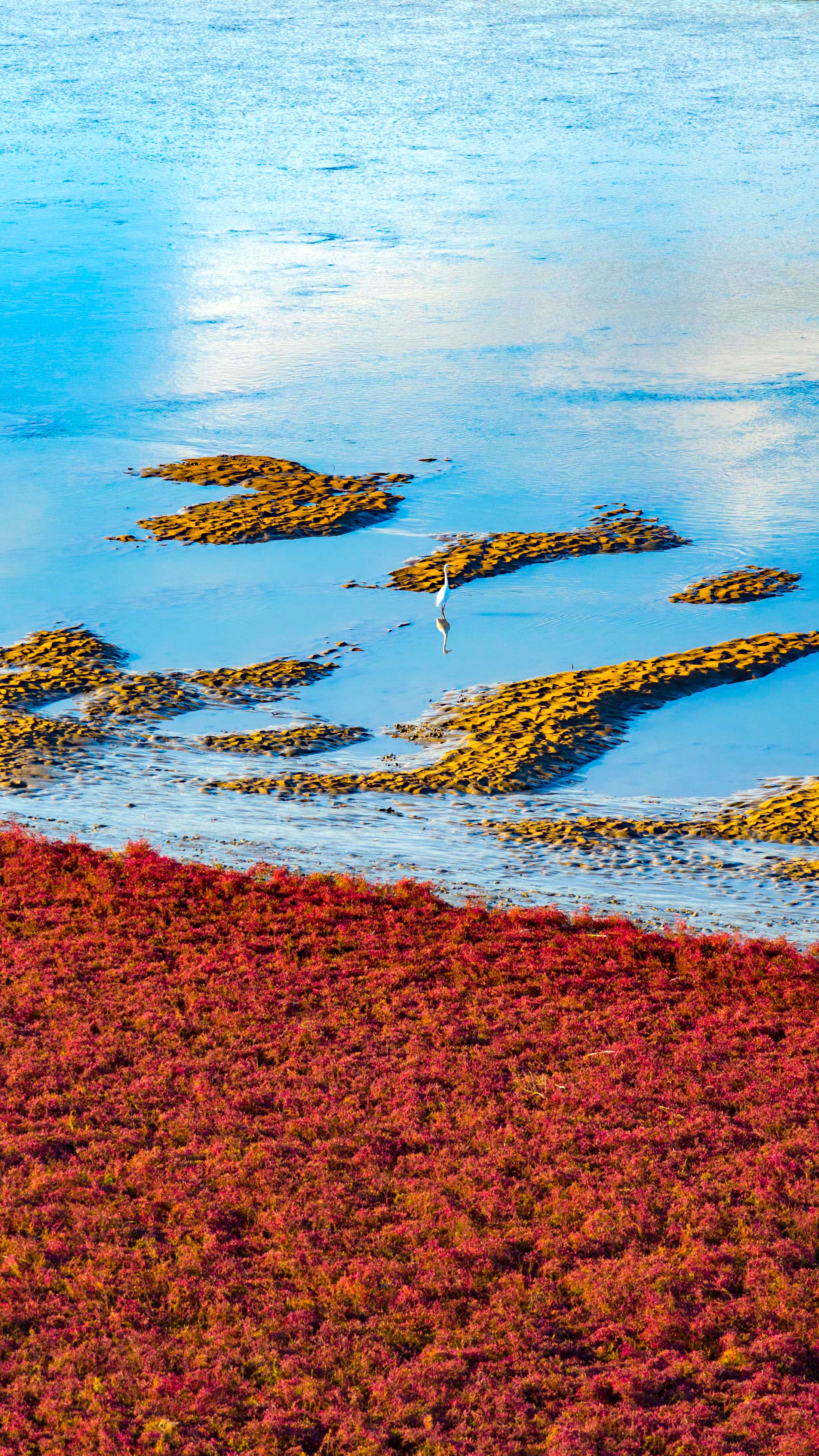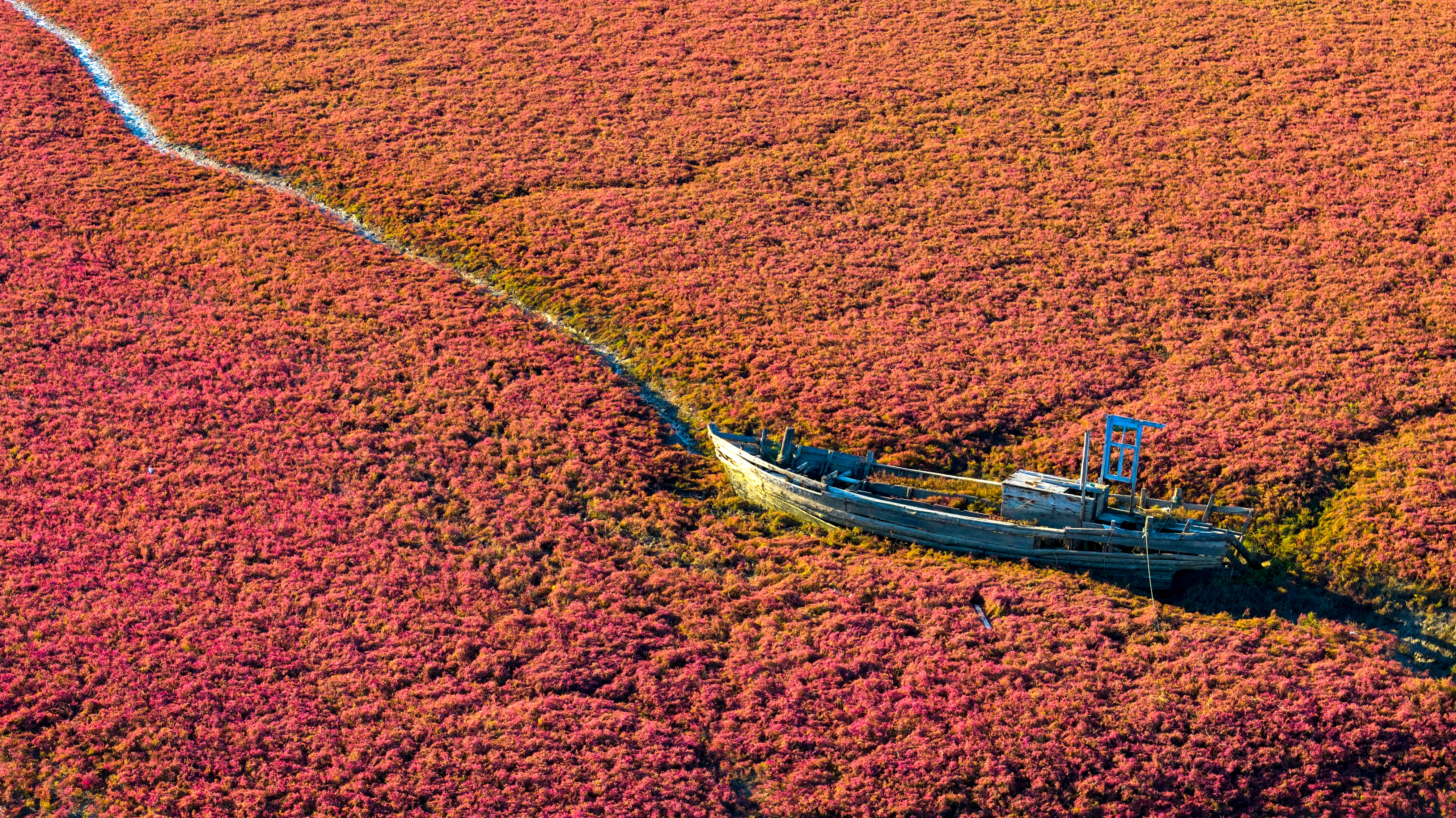 这时,我们才明白,这片红滩的惊艳,从不是单薄的视觉冲击——它是盐地碱蓬与自然融合的勇气与智慧,是白鹭与老船交织的诗意,更是人与自然共生的见证。