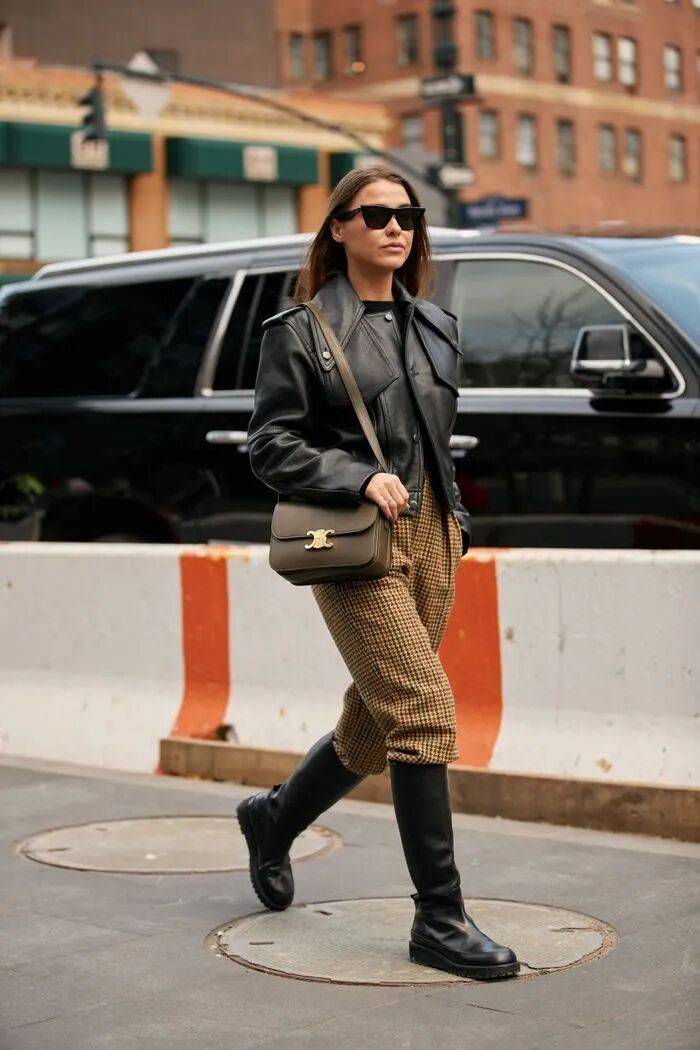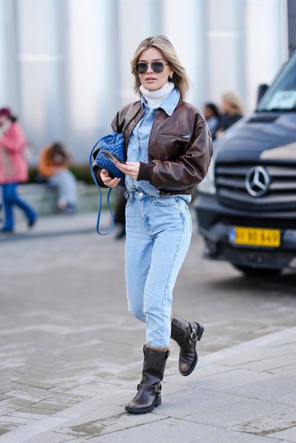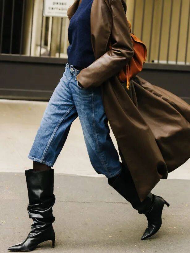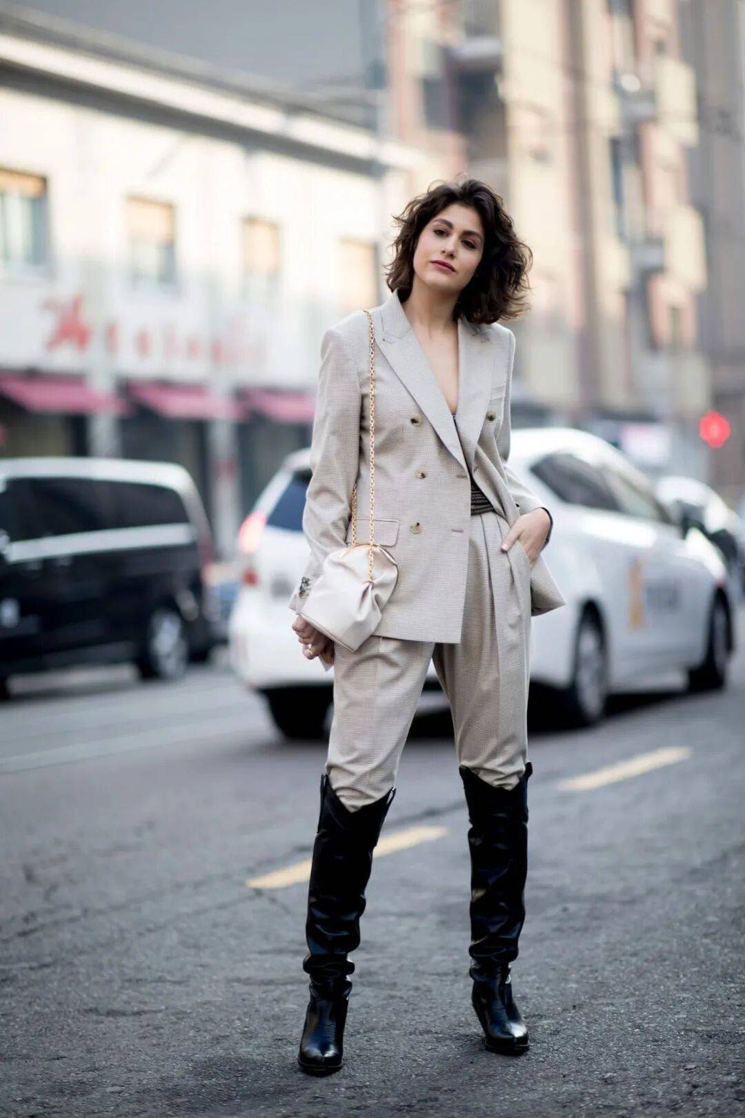 裤型与靴筒的组合几乎决定了腿型的呈现。想更显瘦,选择修身一点的气氛裤配窄筒靴,想更显松弛,阔腿七分裤配直筒靴会更好。