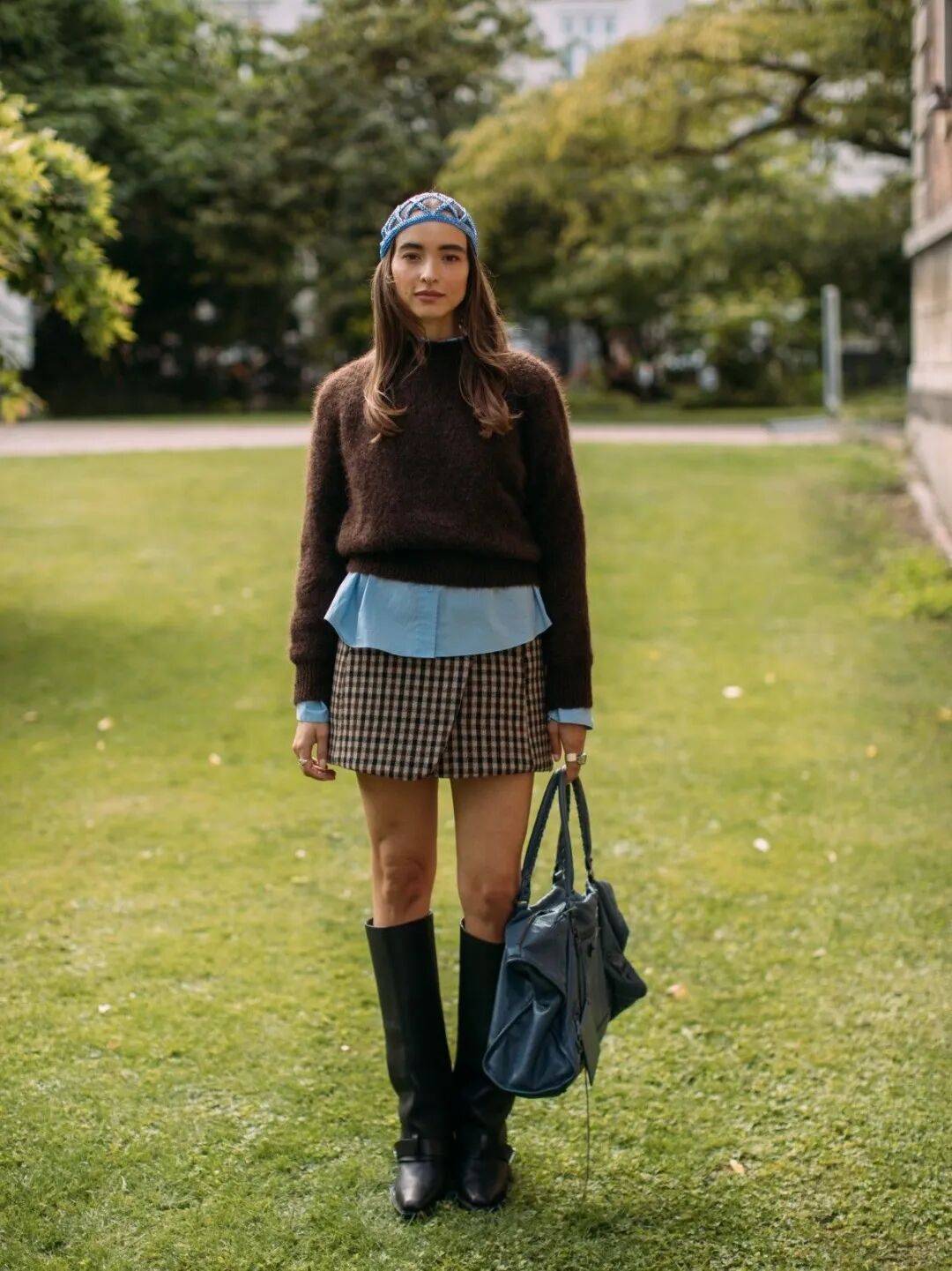 至于今年流行的波西米亚半裙,格子裙与小黑靴的风格也能形成微妙碰撞。
