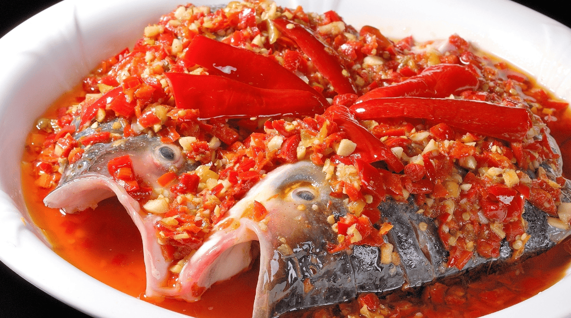 剁椒鱼头绝对是湘菜的 “门面担当”,桌桌必点的硬菜。选用鲜活的胖头鱼鱼头,对半剖开平铺在盘中,铺满红彤彤的剁椒和豆豉,再撒上姜丝、蒜末,上锅猛火蒸熟。