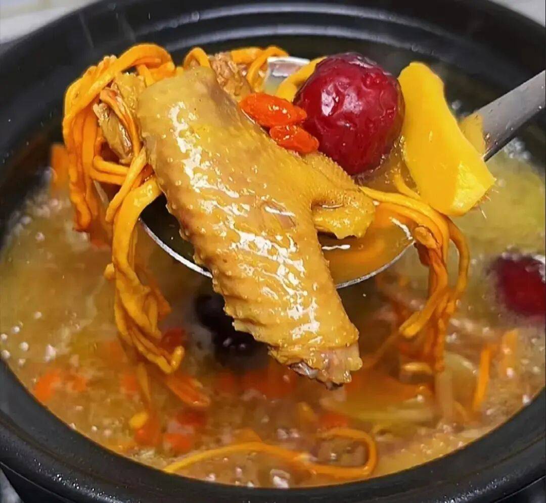 做法:鸽子宰杀洗净切块,用开水焯水去腥;锅中加水烧开,放入鸽子块和姜片煮开;转小火慢炖1小时,加入虫草花和枸杞继续炖煮30分钟,最后加盐调味即可。