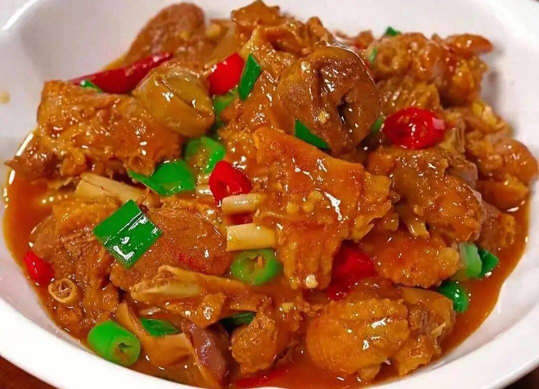 特点:色泽诱人,鸡肉块表面裹着酱汁,点缀着绿色葱花,看起来十分美味。