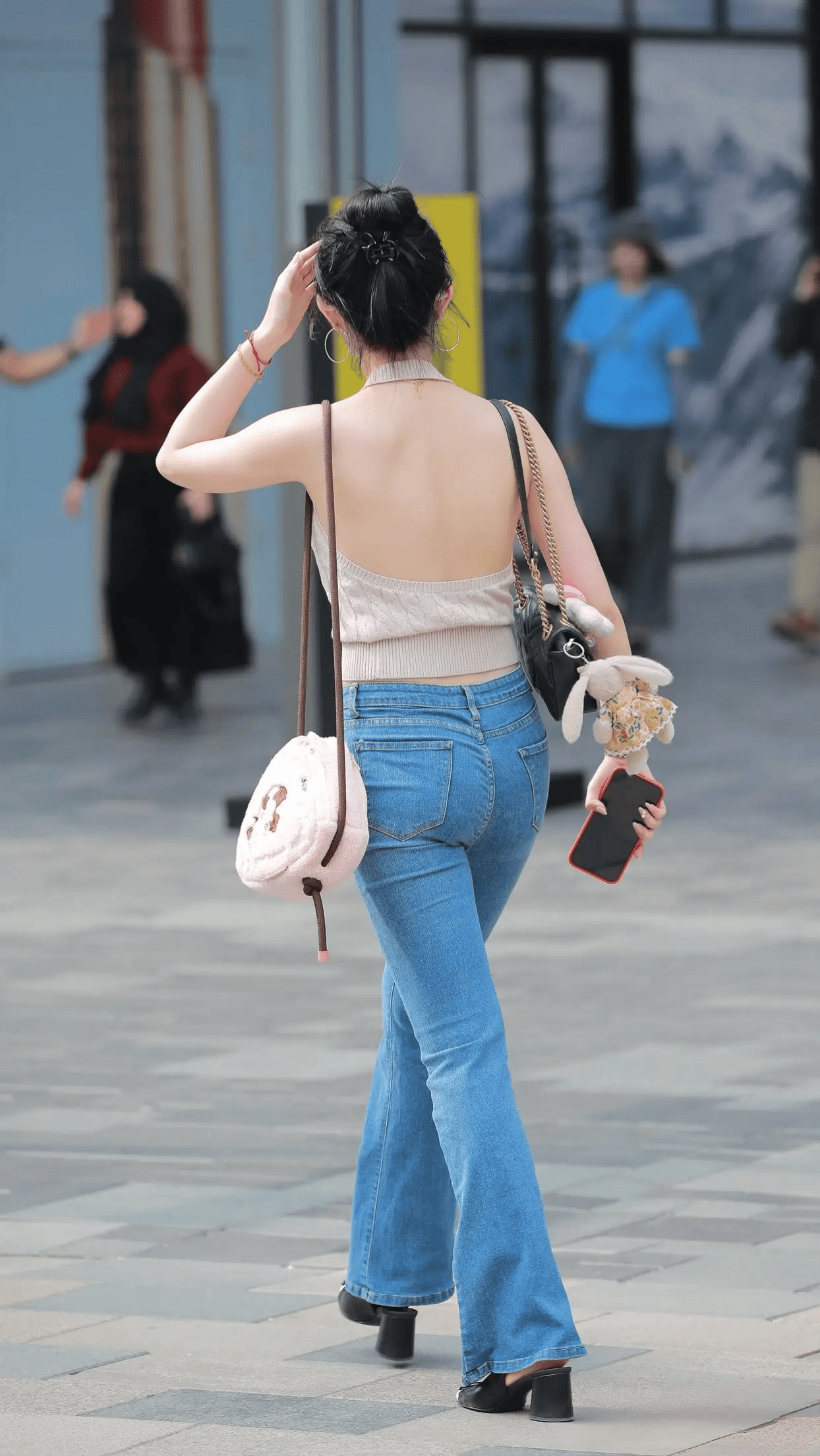 在广东的街头,偶遇这位穿灰色套装的美女,