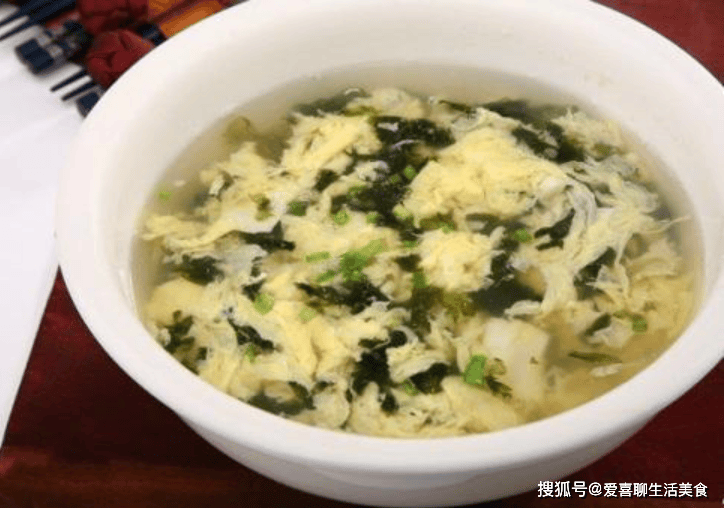说明:两幅图片均展示了紫菜与蛋花的搭配,与推荐早餐的清淡爽口特点一致。