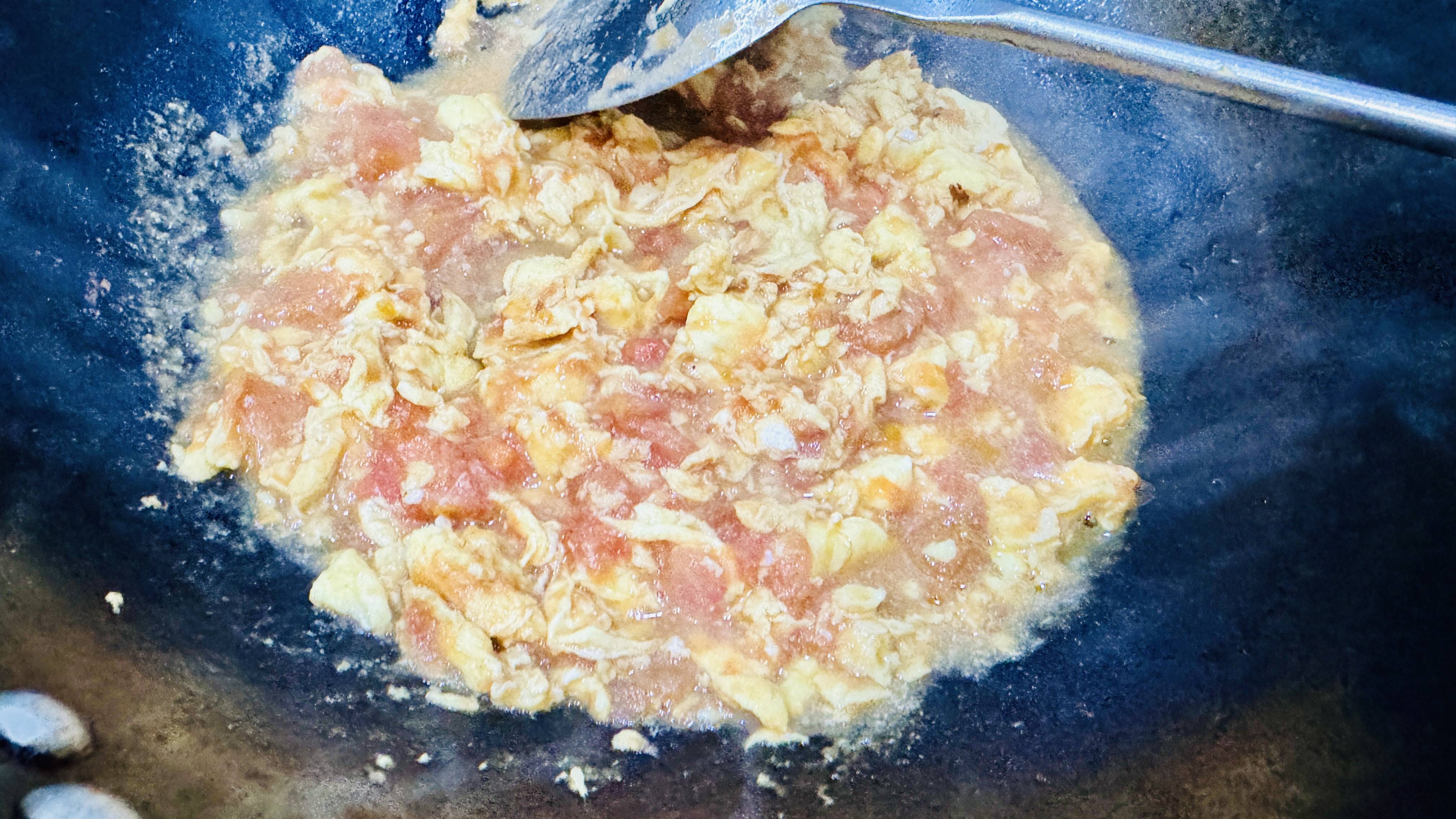 参考图片:图片1(左下角)、图片6(炒至混合的鸡蛋和西红柿)、图片8(番茄炒蛋)