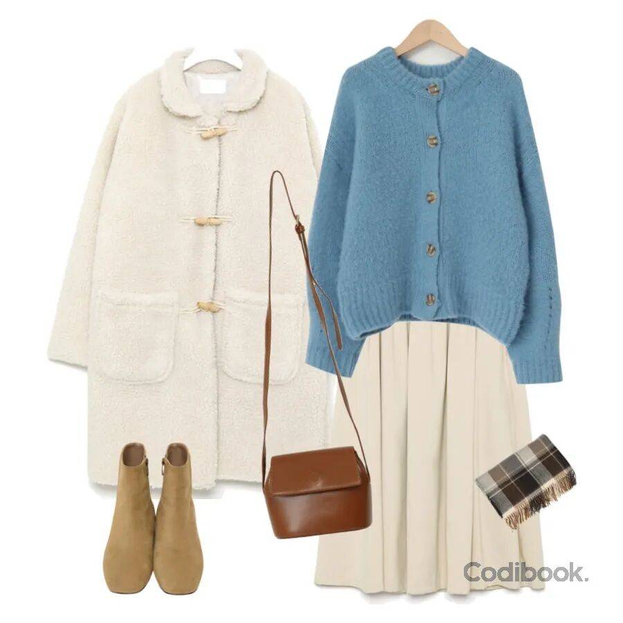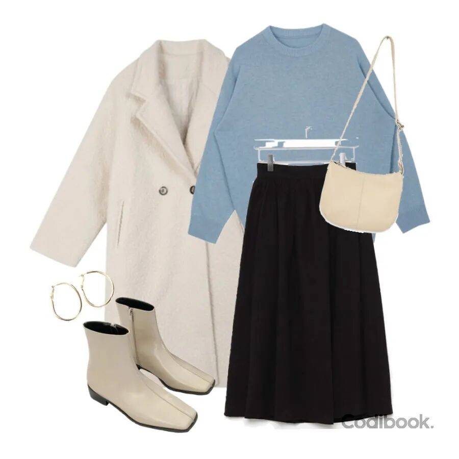 搭配建议:以灰蓝色大衣搭配贝母白羊绒针织,内搭可加入极淡银灰,形成层次递进的冷调高级感。