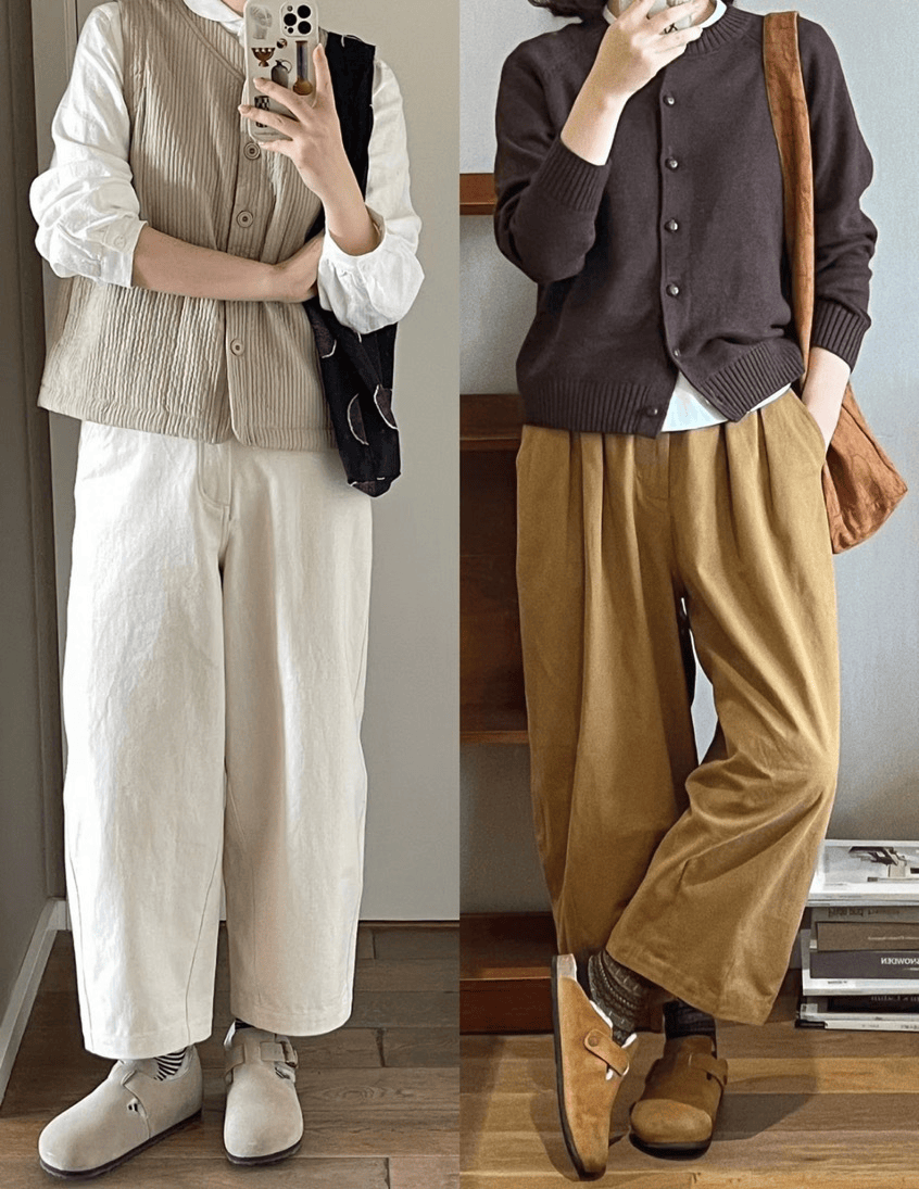 同色系不同温度混搭:例如暖调卡其 + 冷调燕麦,形成微妙对比。