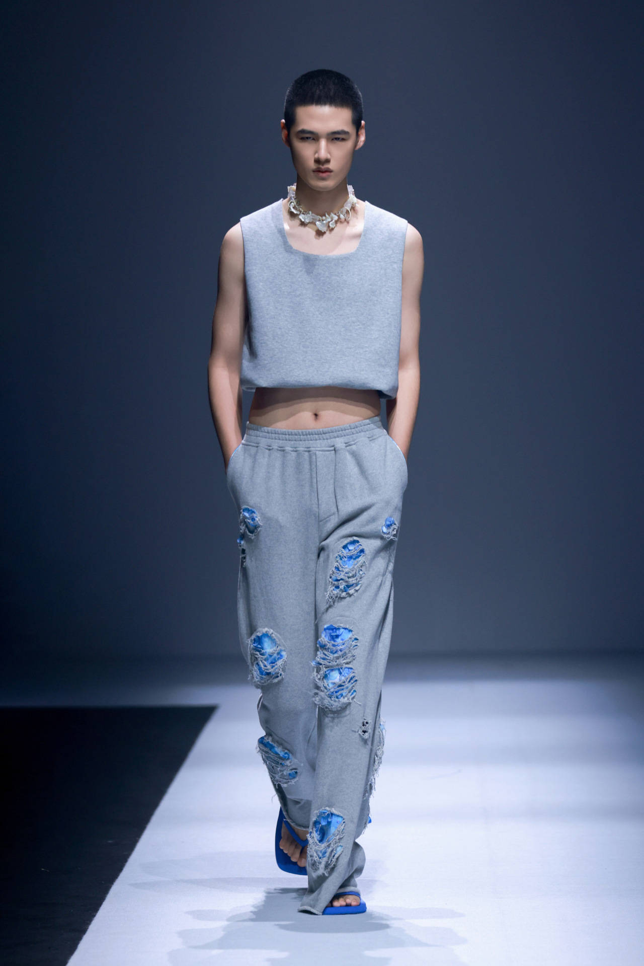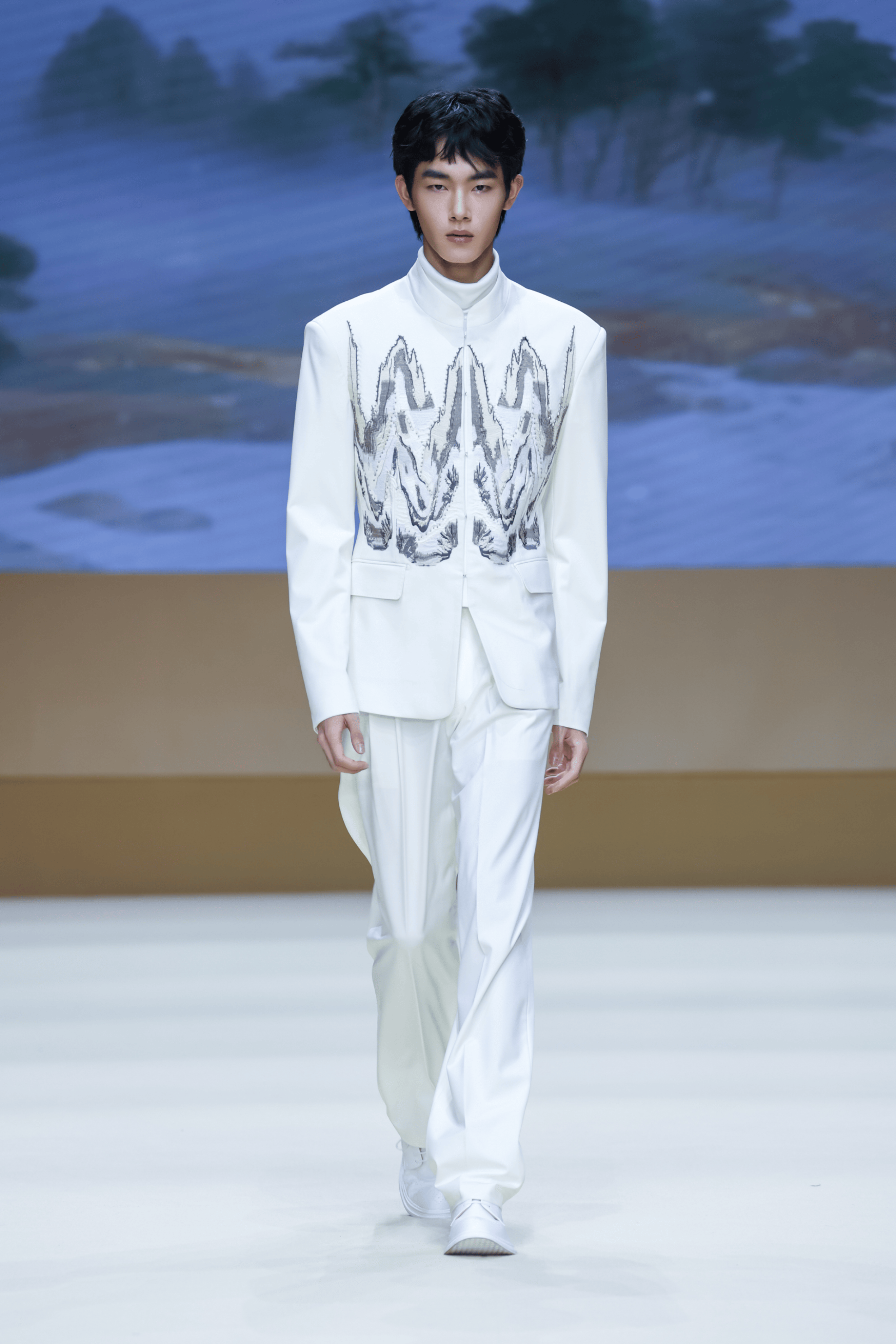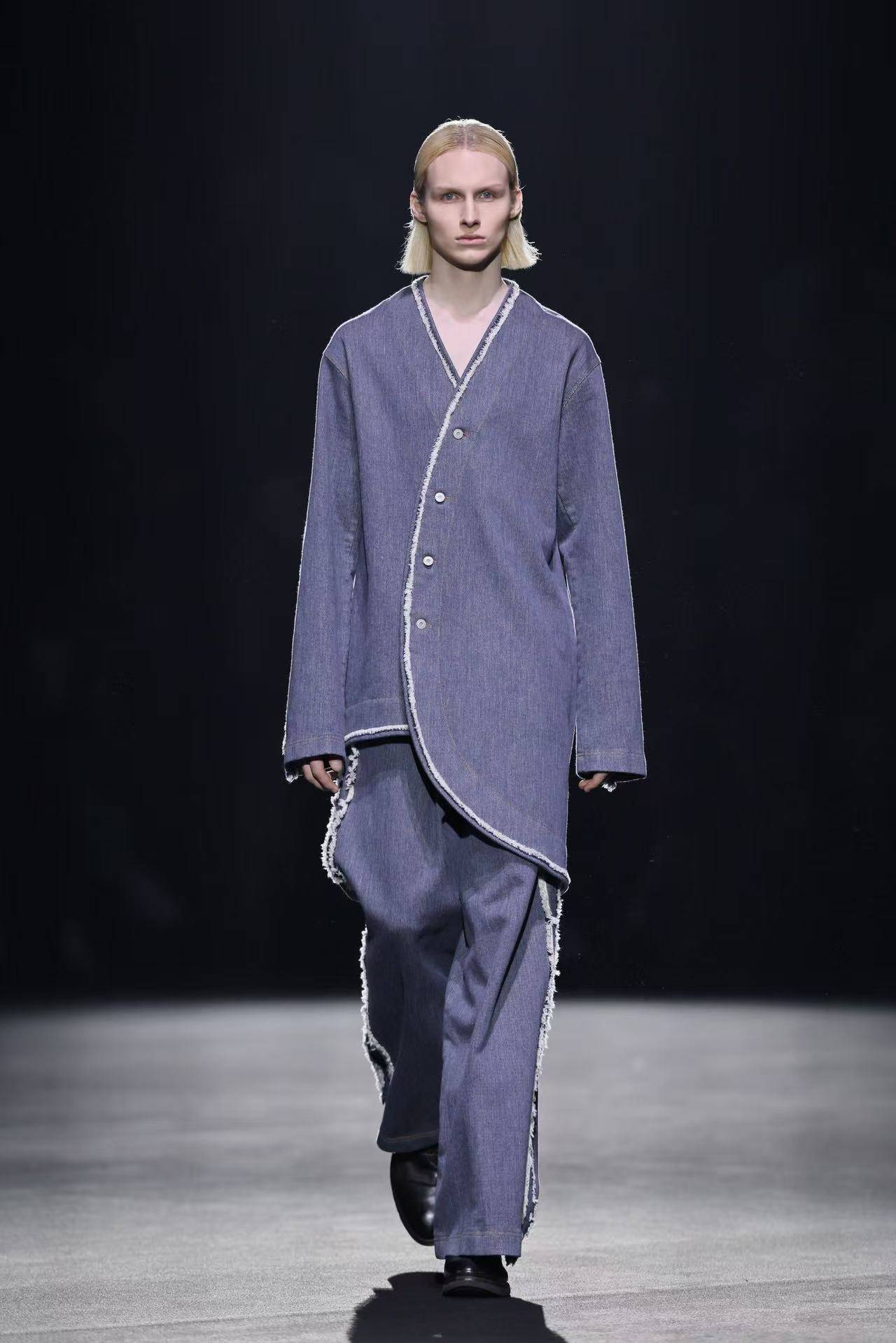 第十二届“10+3”入选设计师贺萌萌,擅长通过面料创新和色彩混搭,诠释东方少年之风骨。本季,MoeHo末禾「少年游」秀场系列,展现了东方文化中含蓄而充满力量感的少年形象,通过结构丰富的剪裁、层次灵动的线条和张扬大胆的配色,创造出新奇有趣的视觉体验。