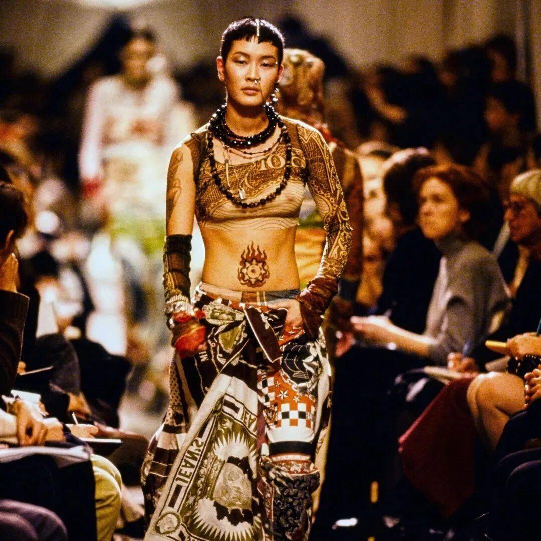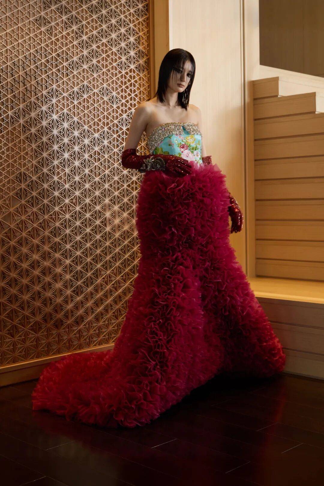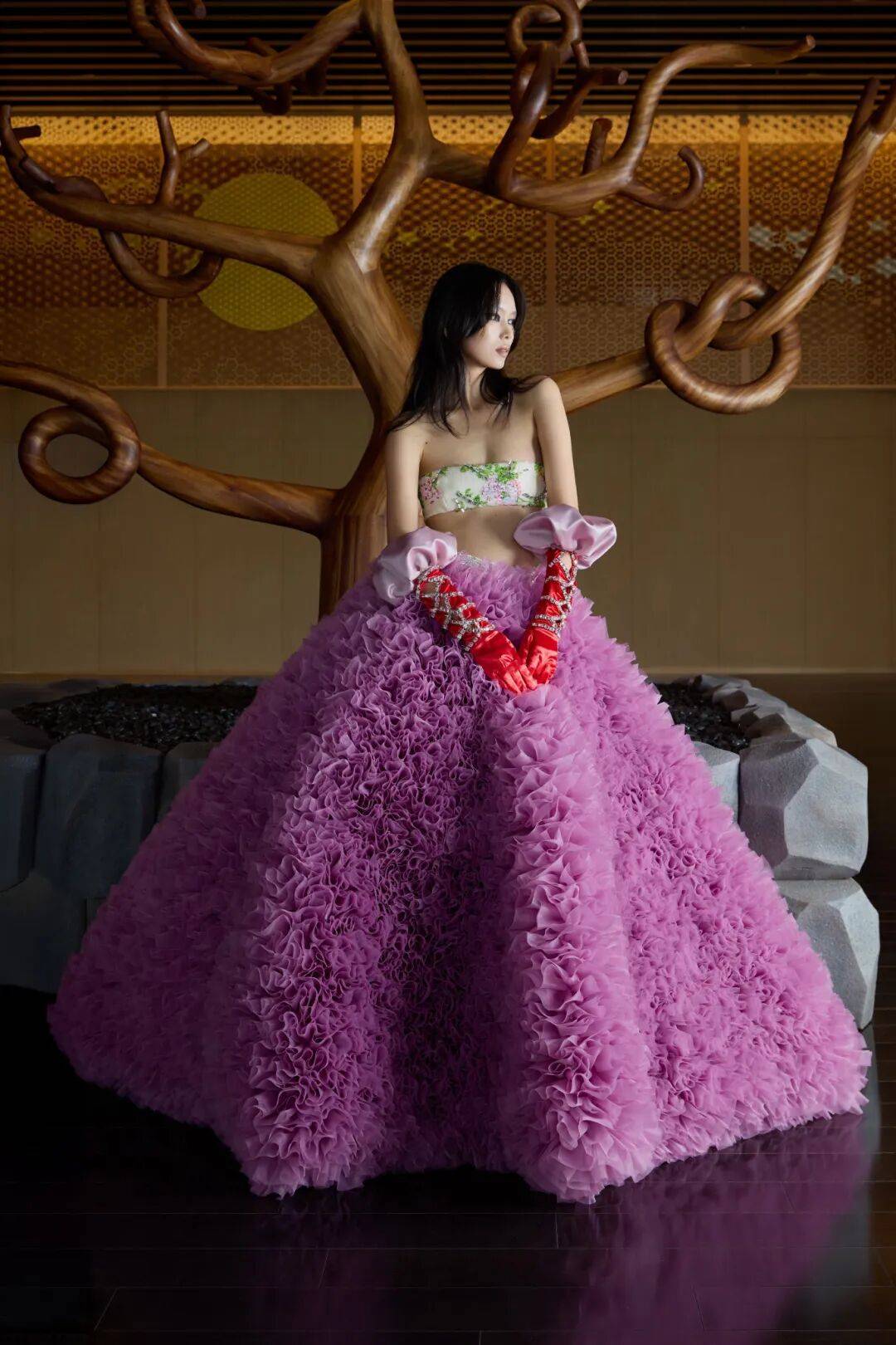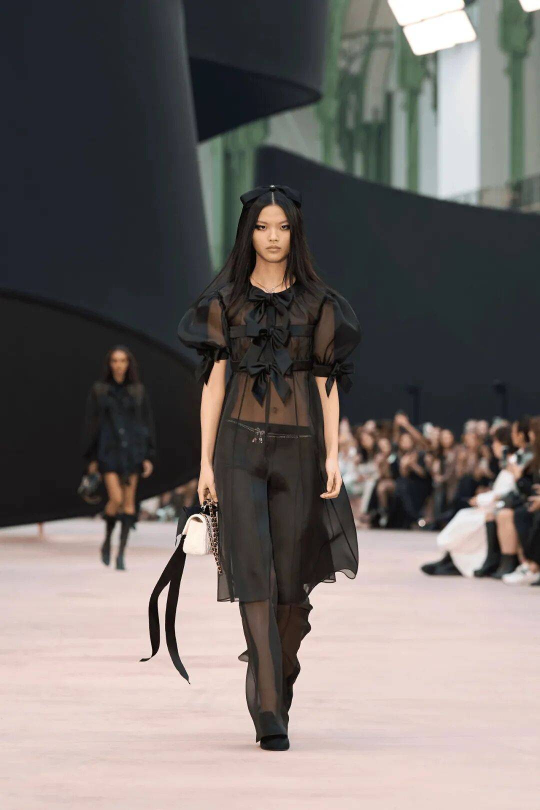 谢幕环节模特集体将裙摆堆叠成巨型花冢,完成从“葬礼”到“重生”的仪式闭环,呼应日本物哀美学。