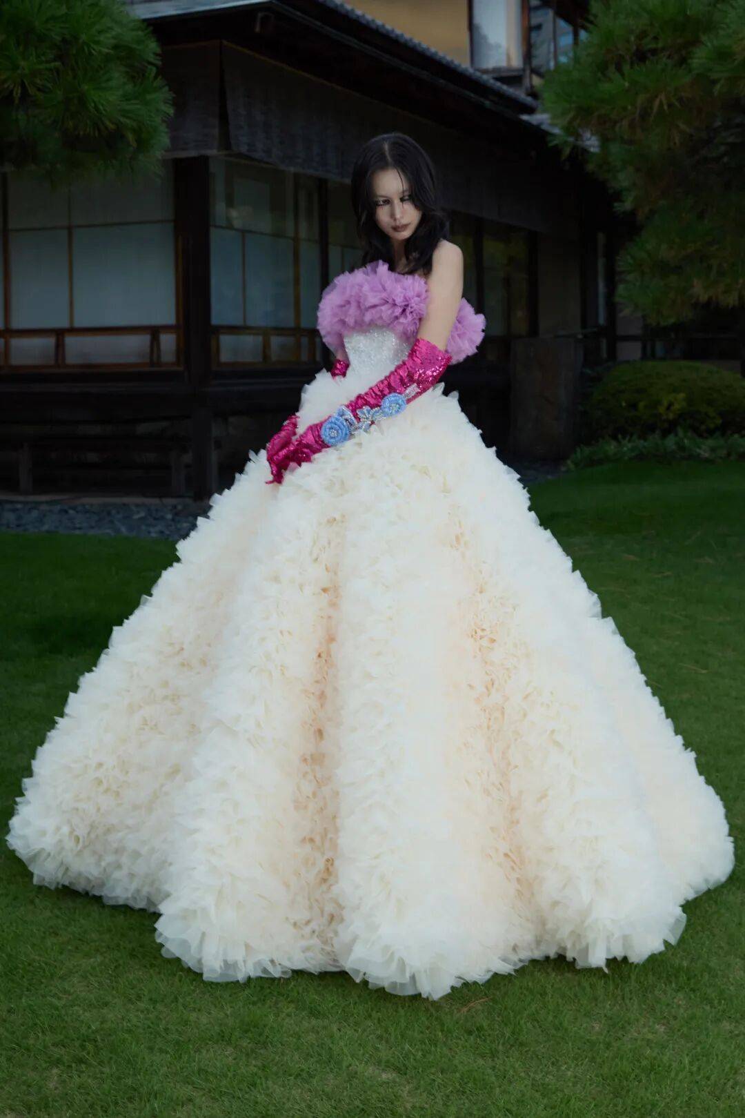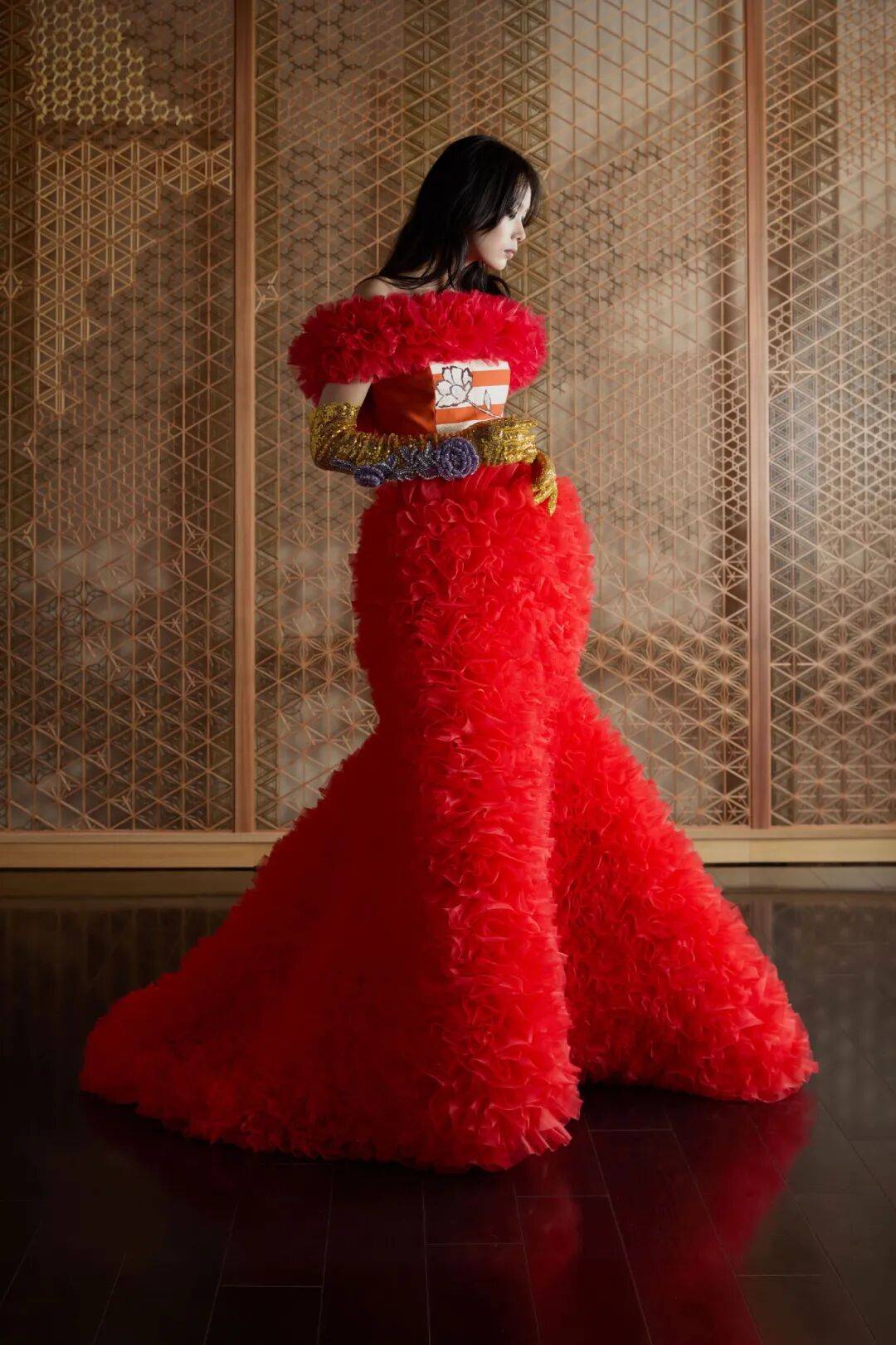 这种设计既是对传统文化的致敬,也是创新的一种体现。小泉智贵将日本传统服饰元素与现代婚纱设计相结合,创造出独具特色的作品。这些单品不仅适用于婚礼,同样适合其他特殊场合,如晚宴和红毯活动。