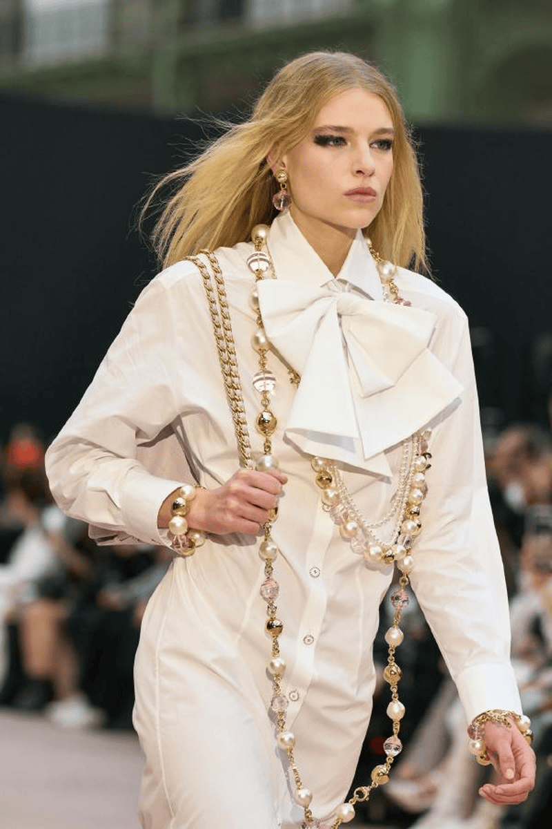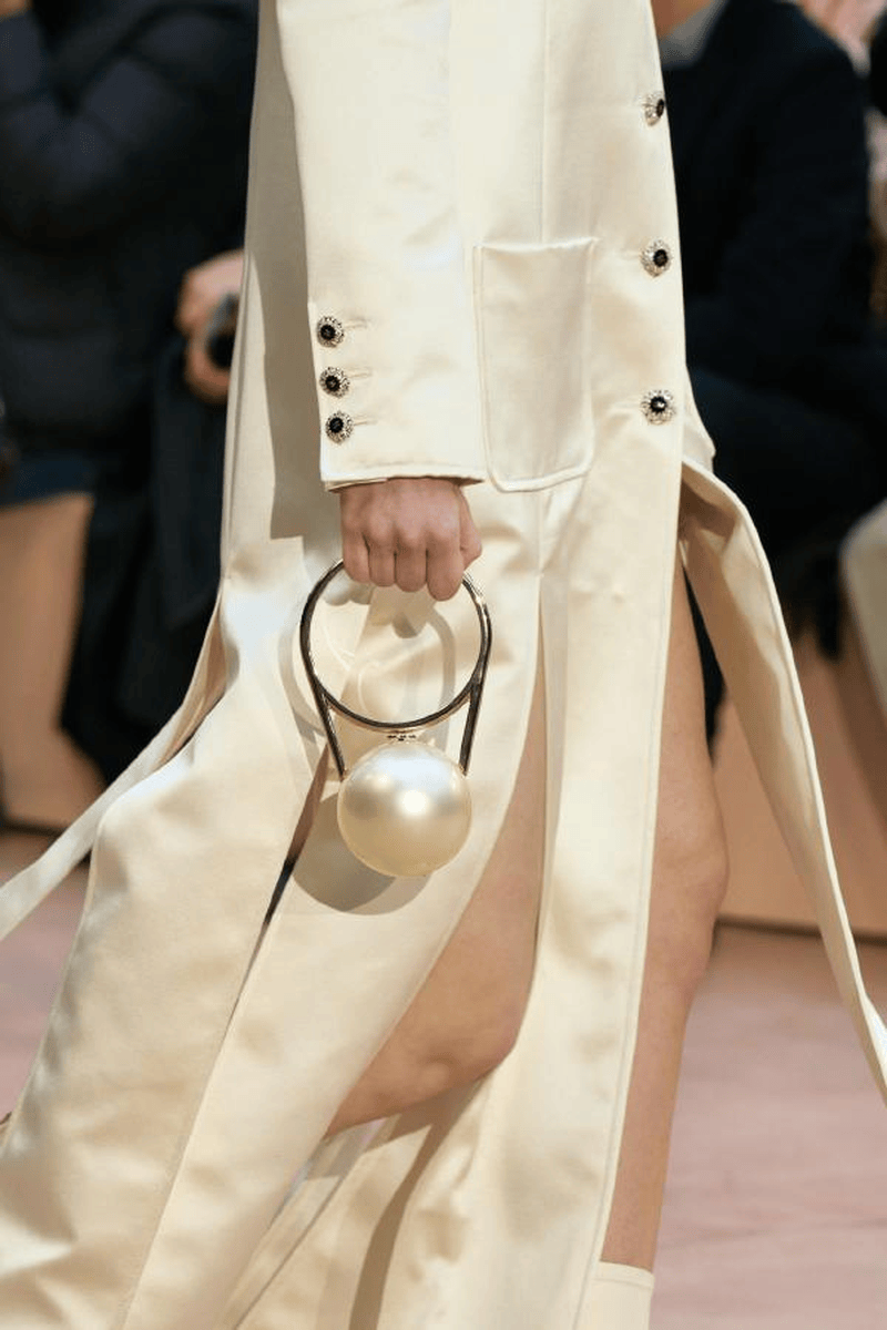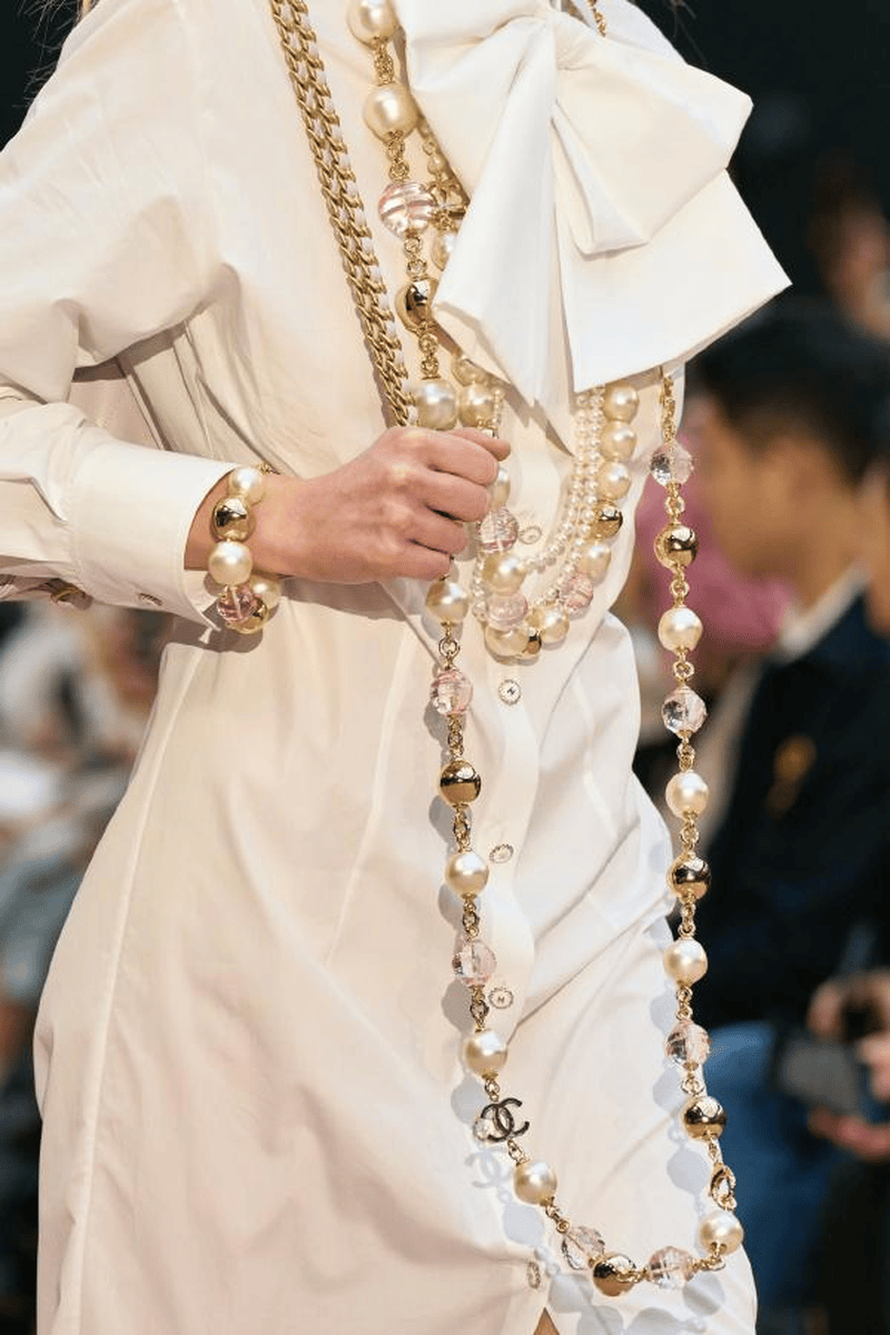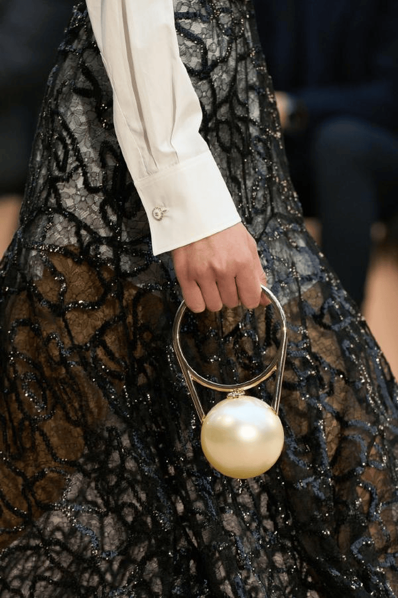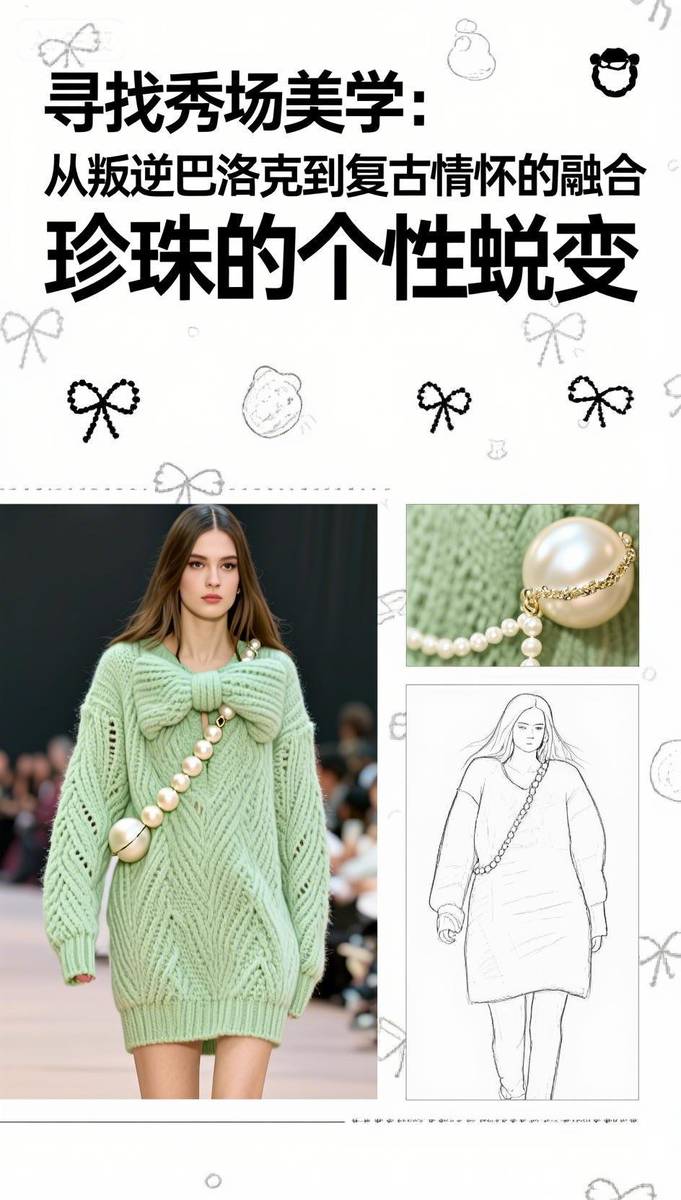 叛逆·重塑——巴洛克珍珠的秀场美学蜕变 一、反叛基因:从“畸形珠”到美学符号 颠覆传统审美:巴洛克珍珠(Baroque Pearl)因形状不规则曾被贬为“劣质珠”,17世纪欧洲巴洛克艺术以“打破古典均衡”为核心理念,将其推入艺术视野。其天然凹凸的肌理与虹彩光晕,成为设计师眼中“未被磨圆的灵魂”,象征对完美主义的叛逆。 秀场复兴浪潮: Dior 2021春夏:巴洛克珍珠与金色金属编织出异域民族风情,原始粗粝感碰撞精密工艺,诠释“残缺即美”。 Jason Wu 2021春夏:不规则珍珠耳饰搭配极简廓形时装,以反差凸显现代女性的柔韧力量。 Nº21 2021春夏:珍珠与水晶镶嵌于镂空裙装,巴洛克华丽基因注入未来主义剪裁,重构复古奢华。 二、个性宣言:珍珠的形态革命 解构主义重塑 Versace 2024秋冬:将燕尾服尖领与巴洛克珍珠结合,透视蕾丝裙镶嵌水晶珍珠链,刚柔博弈中释放暗黑女王气场。 Burberry 2026春夏:流苏珍珠缀饰随模特步伐摇曳,与现场电子乐节拍共振,打造“听觉视觉共生”的沉浸式剧场。 无性别主义渗透 王一博佩戴珍珠链条攀岩造型(2025),打破珠宝性别边界;CELINE男装系列以巴洛克珍珠层叠项链搭配机车夹克,叛逆与优雅共生。 三、复古情怀的现代表达 宫廷风新生: 热巴2025年节目中演绎中世纪巴洛克宫廷风,丝绒束腰长裙搭配层叠珍珠choker,凡尔赛美学融合摩登剪裁。 Valentino 2025早秋系列:哥特式巴洛克长裙以勃艮第酒红丝绒为底,珍珠与金属刺绣勾勒宗教感廓形,暗黑神话再临。 静奢主义回潮: Max Mara 2025秋冬:黑醋栗紫羊绒大衣内嵌灰调珍珠钮扣,低调光泽如暮霭中的古典诗行。 Hermès针织系列:顶级羊绒罗纹裙配单颗南洋澳白吊坠,12mm稀有珠层流转粉蓝绿三色晕彩,静默中绽放收藏级质感。 四、未来叙事:科技与自然的共生 材质实验: 华为Pocket2时装秀(2024):珍珠母贝纹理工艺赋予手机外壳虹彩变光,科技产品首次被赋予“有机珠宝”属性。 Thom Browne 2025秋冬:羽毛丝线混织珍珠纱,模拟鸟类羽翼光泽,茧形大衣如机械仿生装置 可持续美学: Icicle 2025:植物染色石墨灰羊绒裙,搭配再生金属框架珍珠胸针,将东方“天人合一”哲学植入设计